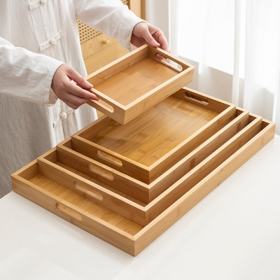 Factory Direct Sales Tea Tray Bamboo Wood Household Tea Cup Tray Fruit Tray Bamboo Tray Bread Tray Wooden Tray