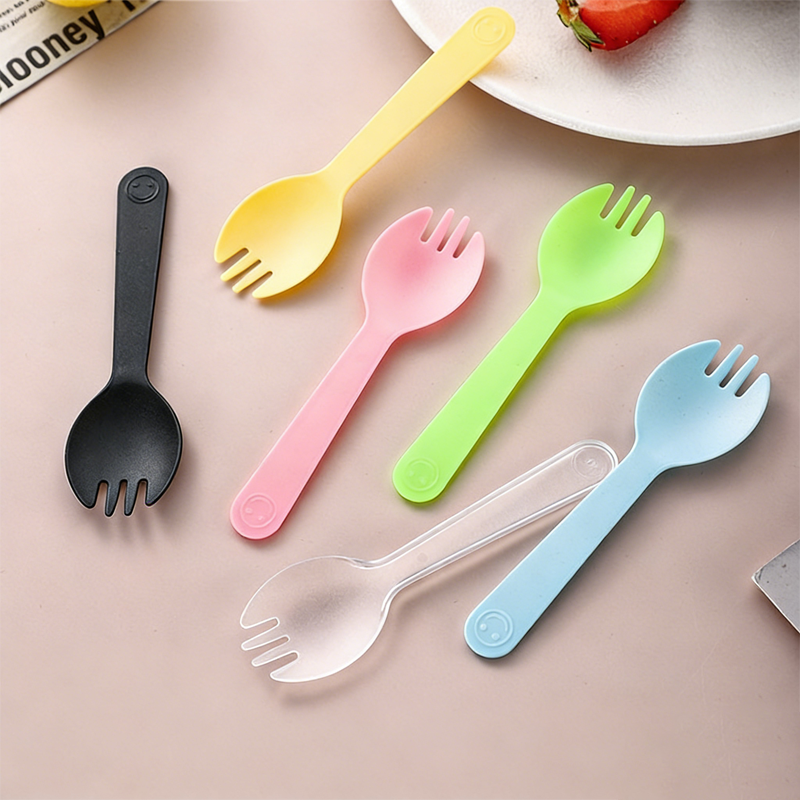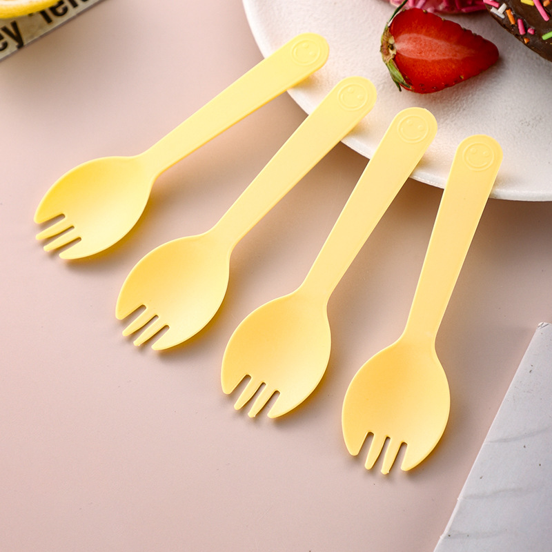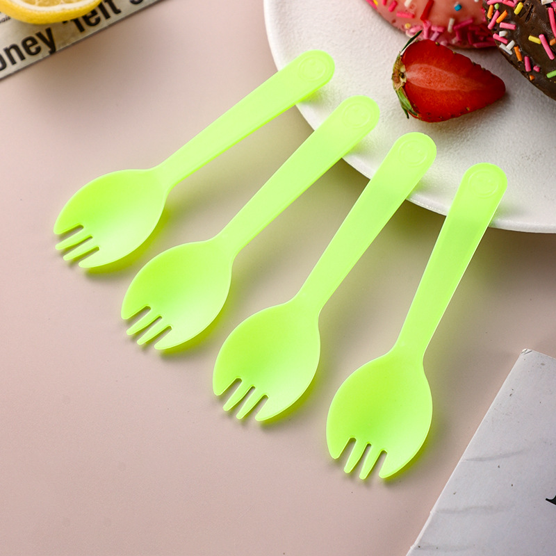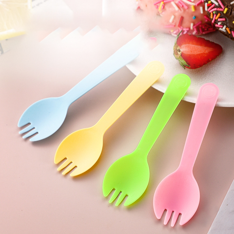 شوكة للاستعمال مرة واحدة من البلاستيك آمن على الغذاء عبوة بسيطة مستقلة للحلوى وصيد الفاكهة ملعقة شوك كيك سميكة يمكن التخلص منها
