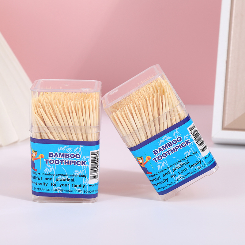 شوكة فاكهة يمكن التخلص منها علامة فاكهة الخيزران المعبأة في زجاجات 500 فندق منزلي مطعم مزدوج الرأس مسواك ناعم