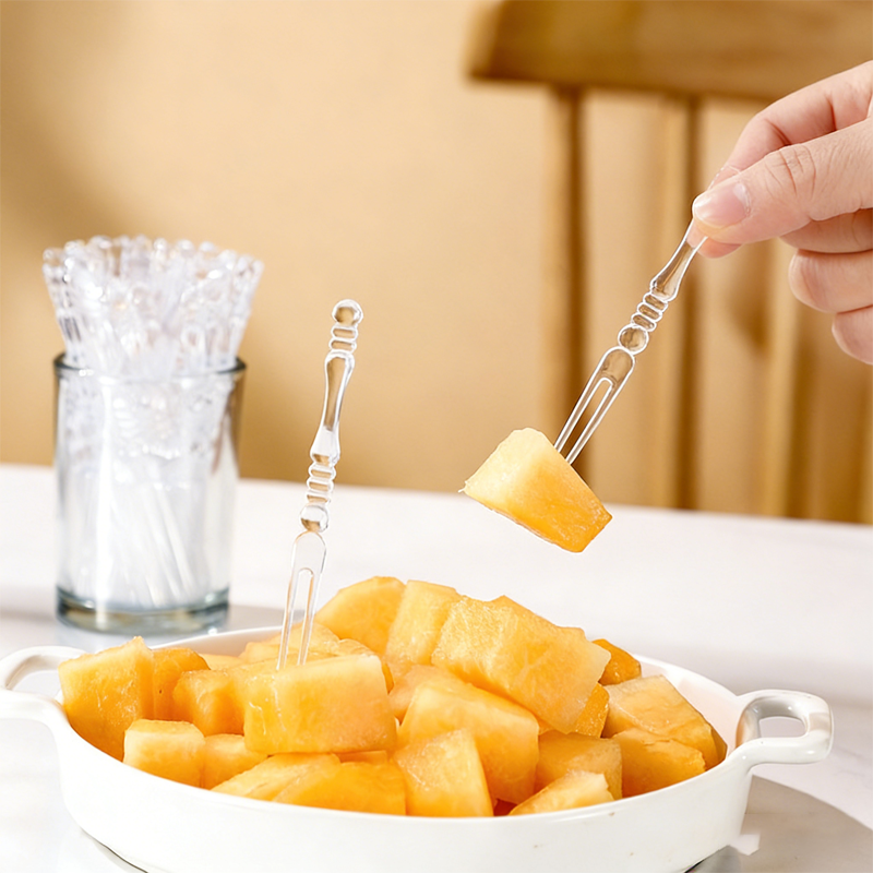 شوكة فواكه يمكن التخلص منها سميكة صلبة للطعام من البلاستيك الشوكة شفافة KTV عصا كعكة القمر التجارية