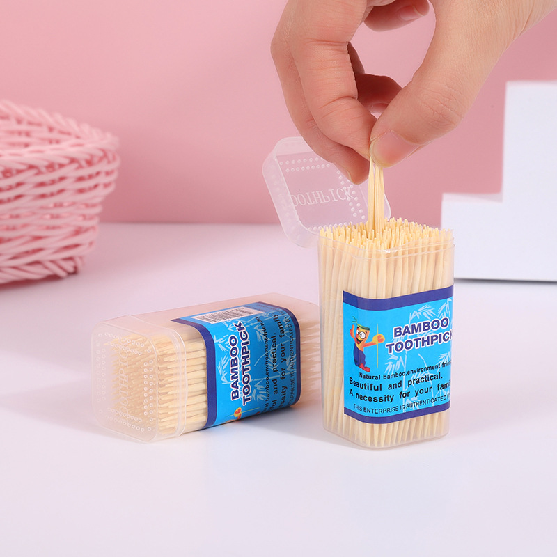 للبيع بالجملة عصي خلة أسنان منزلية دقيقة 180 زجاجة عصي مزدوجة من الخيزران مصنوعة من البلاستيك صندوق خلة أسنان شفاف