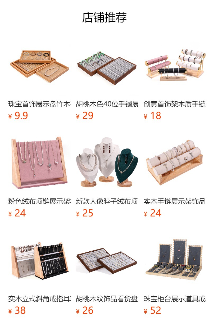 竹木首饰展示托盘饰品看货盘复古收纳盘首饰展示架珠宝陈列道具