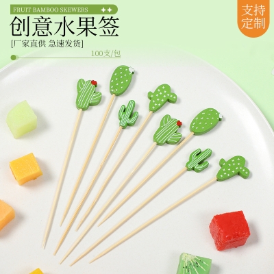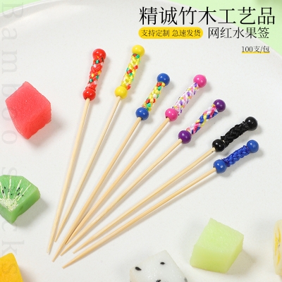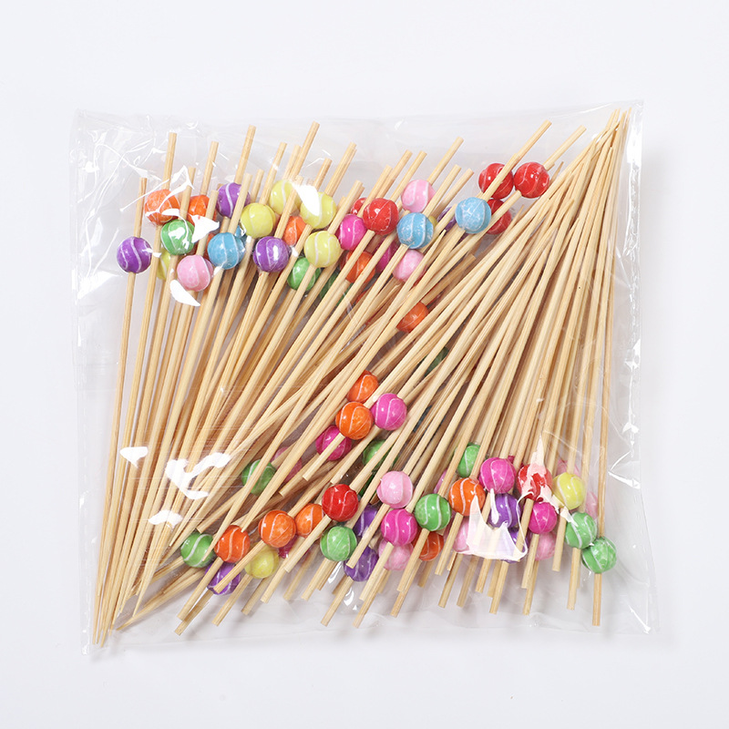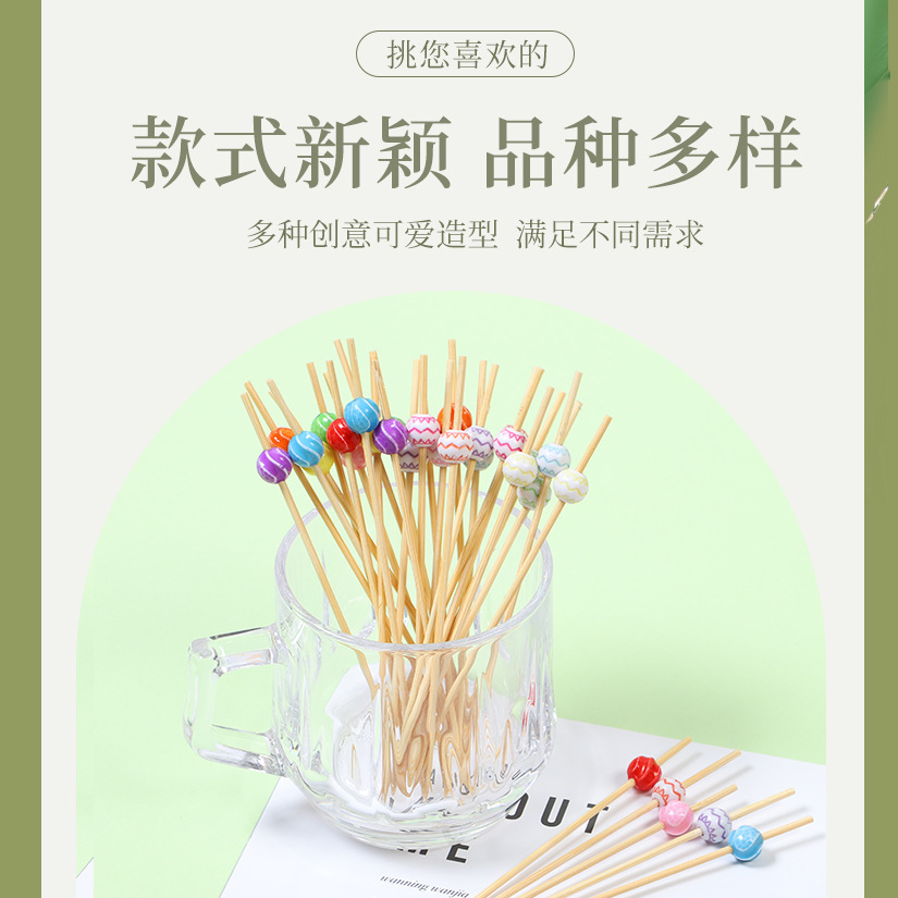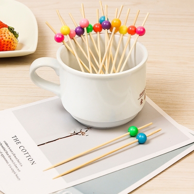 水果签五彩斑点球创意鸡尾酒签点心签KTV艺术串签竹签100支/包