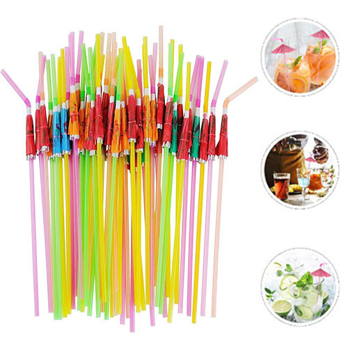 Disposable Straw Sunshade Umbrella Paper Honeycomb Fruit Flamingo Straw Summer Party Decoration Supplies