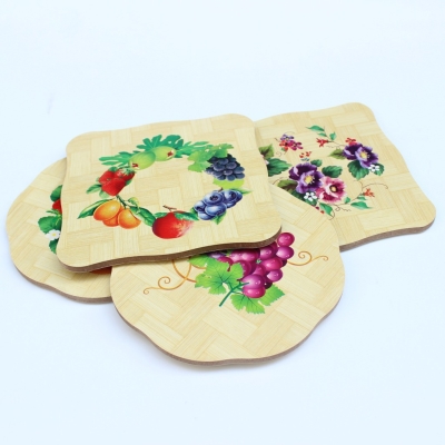 Bamboo wood handmade diy mosaic bottom embryo mat primary school lunch table bowl mat heat insulation love tea cup mat wholesale