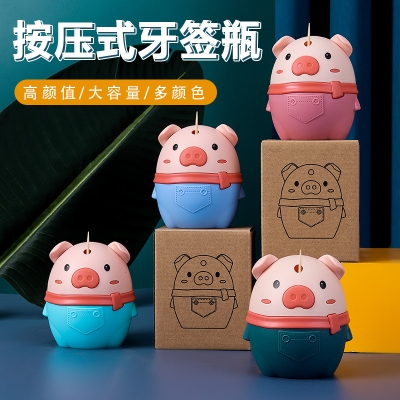 Household Cute Piglet Press Type Automatic Pop-up Toothpick Box Creative Cartoon Restaurant Toothpick Holder Daily Toothpick Box
