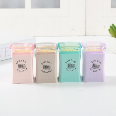 Blue and Pink Lid Boxed Disposable Double-Headed Bamboo Toothpicks Household Fruit Picks Bamboo Carbonized Toothpicks