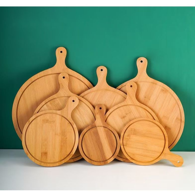 Tablero de pizza de bambú redondo de madera Pan Pastel de sushi Bandeja de carne Madera maciza Placa de comida occidental japonesa Bambú