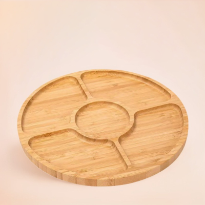 Directo de fábrica Jiugongge almacenamiento merienda placa hogar fruta seca merienda plato bambú pequeño compartimiento bandeja