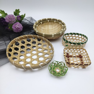 Fábrica directa al por mayor pastelería plato cesta de frutas cocina japonesa y coreana vajilla adornos artesanías hechas a mano bandeja bambú