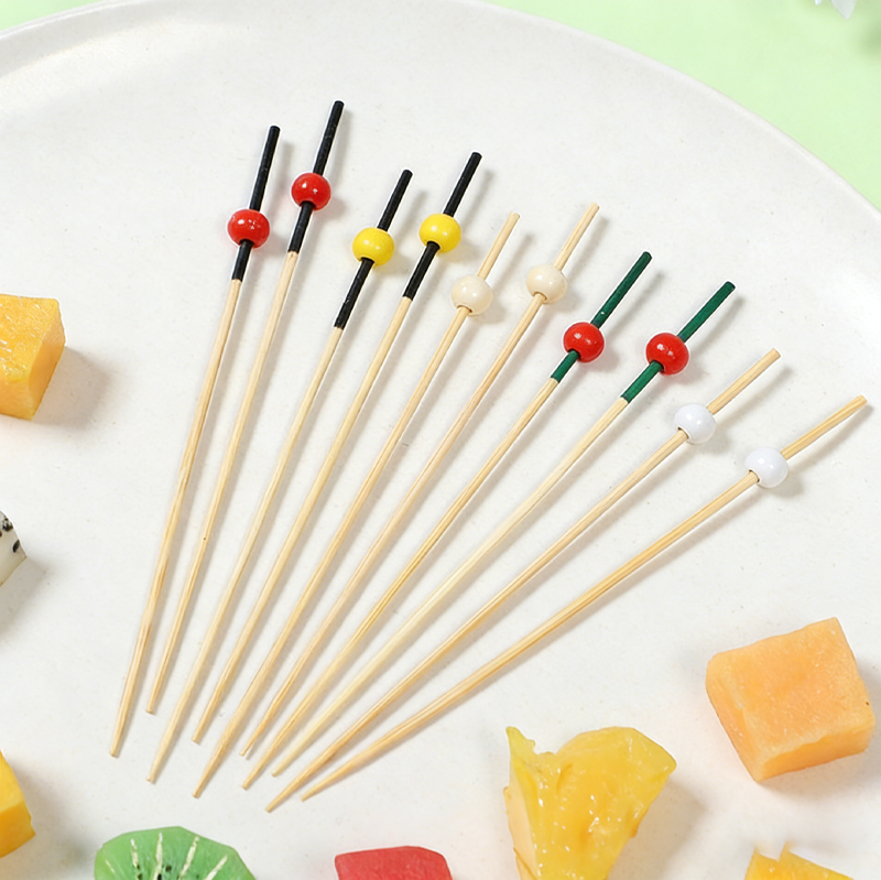 100/bolsa de bambú palo de fruta arte cóctel selección palillo cadena creativa palo de bambú wholesee