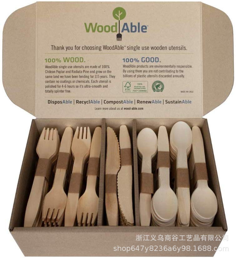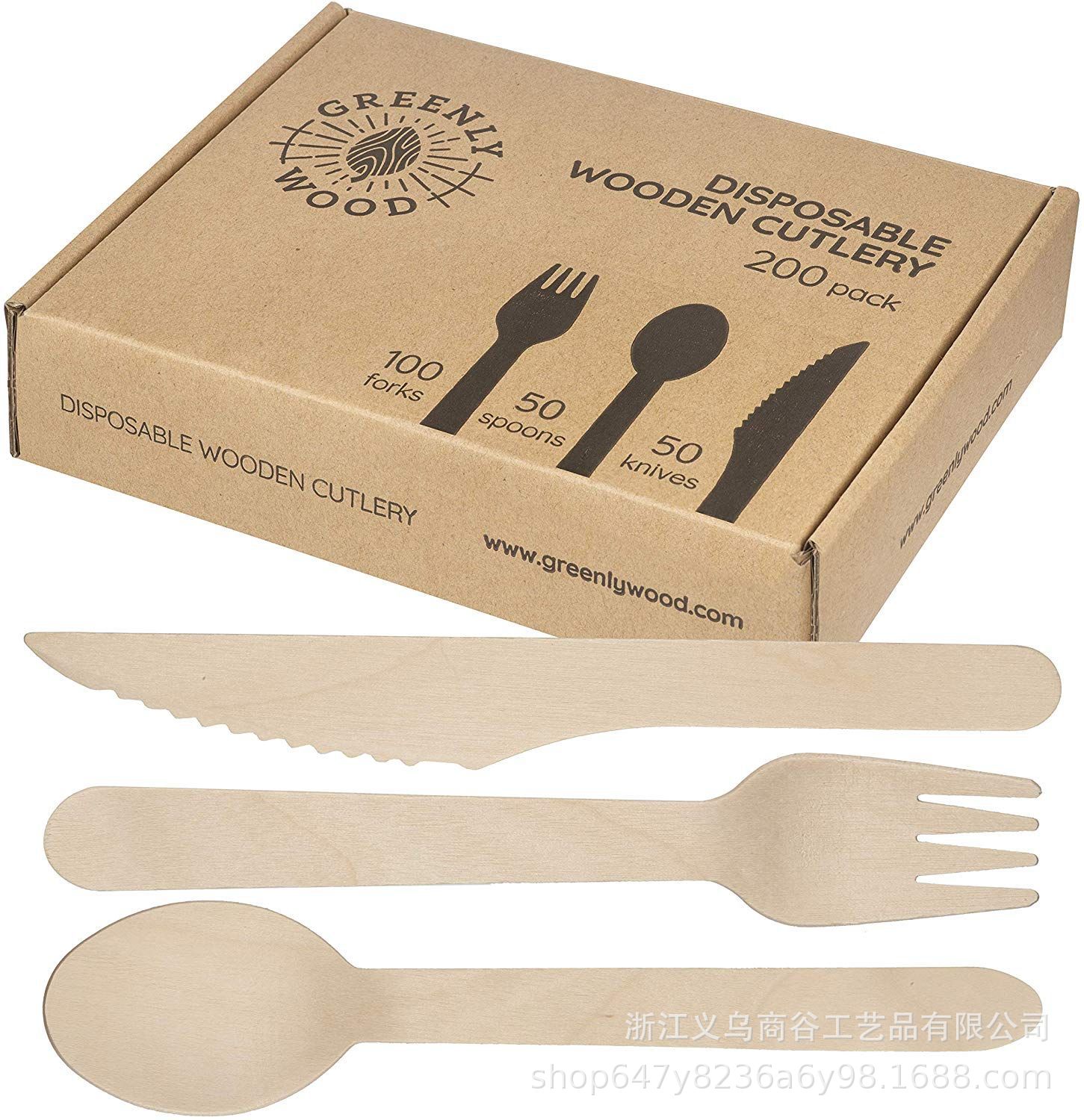 Cuchillo desechable de madera tenedor cuchara pastel postre degradable cuchillo tenedor cuchara vajilla helado abedul cuchillo tenedor cuchara al por mayor