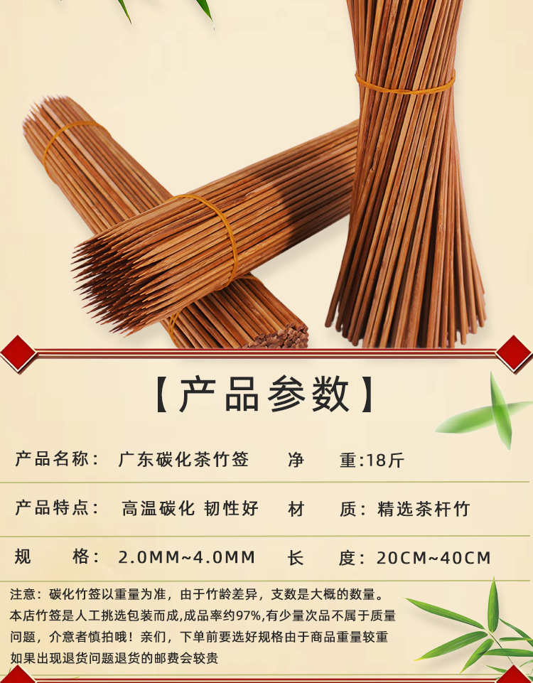 碳化竹签一次性签子特硬广东黑签羊肉串串香烤肠糖葫芦烧烤签批发
