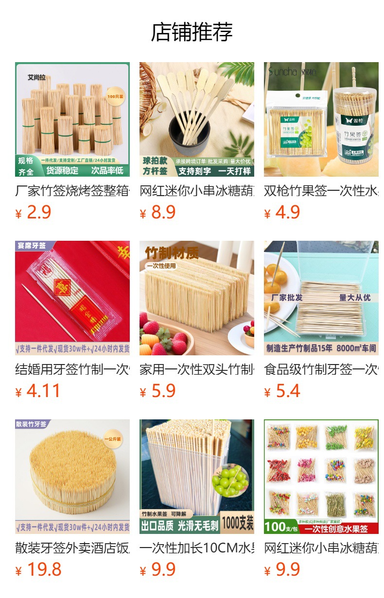 属性1水果签艺术牙签 水果签12厘米 水果签一次性 水果签竹签 水果签子高颜值属性3工艺品竹签 竹签 水果签 一次性竹签 可降解竹签