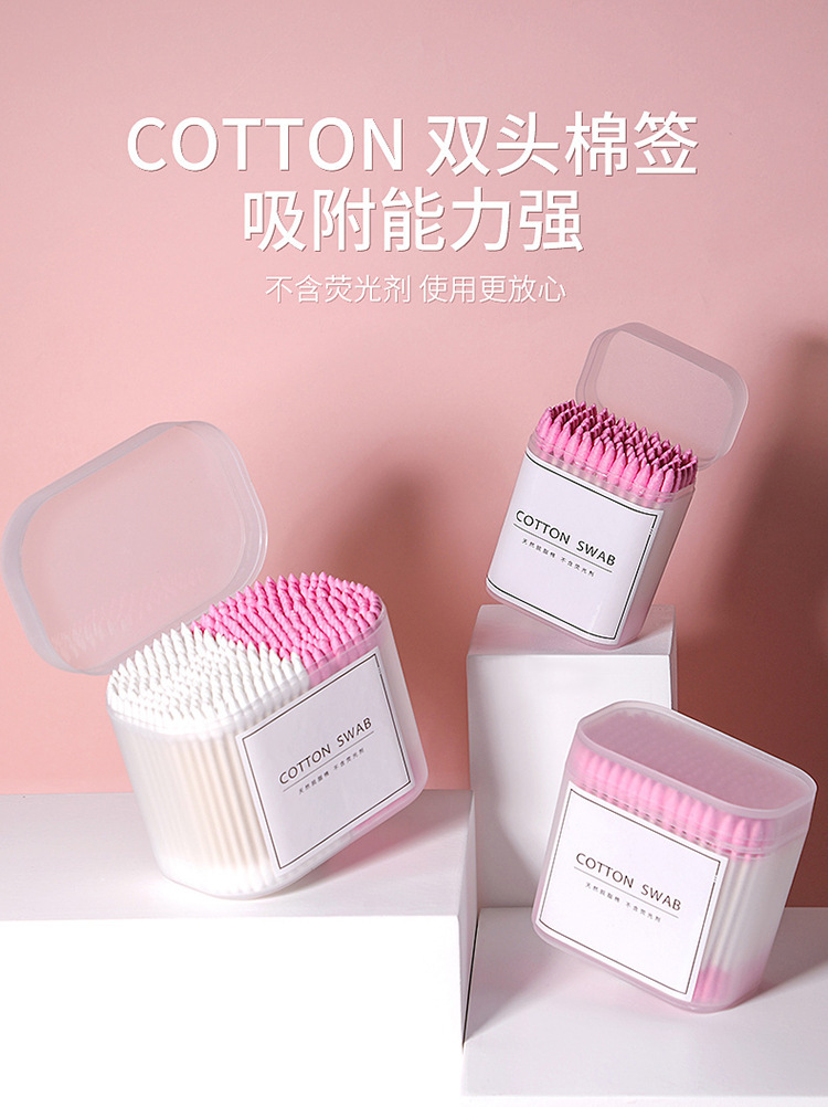Hisopos de algodón desechables, almohadillas de algodón para el hogar, en caja, punta redonda, punta puntiaguda, doble punta, limpieza flexible, palito de algodón para las orejas