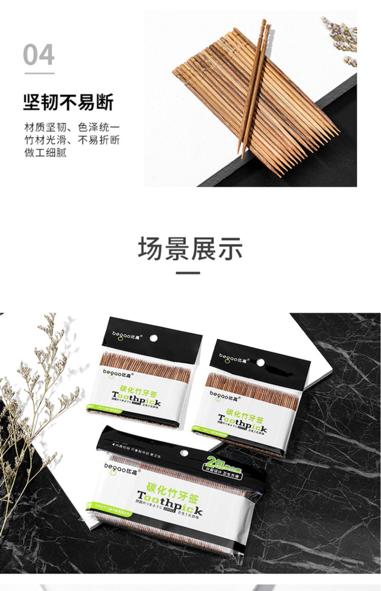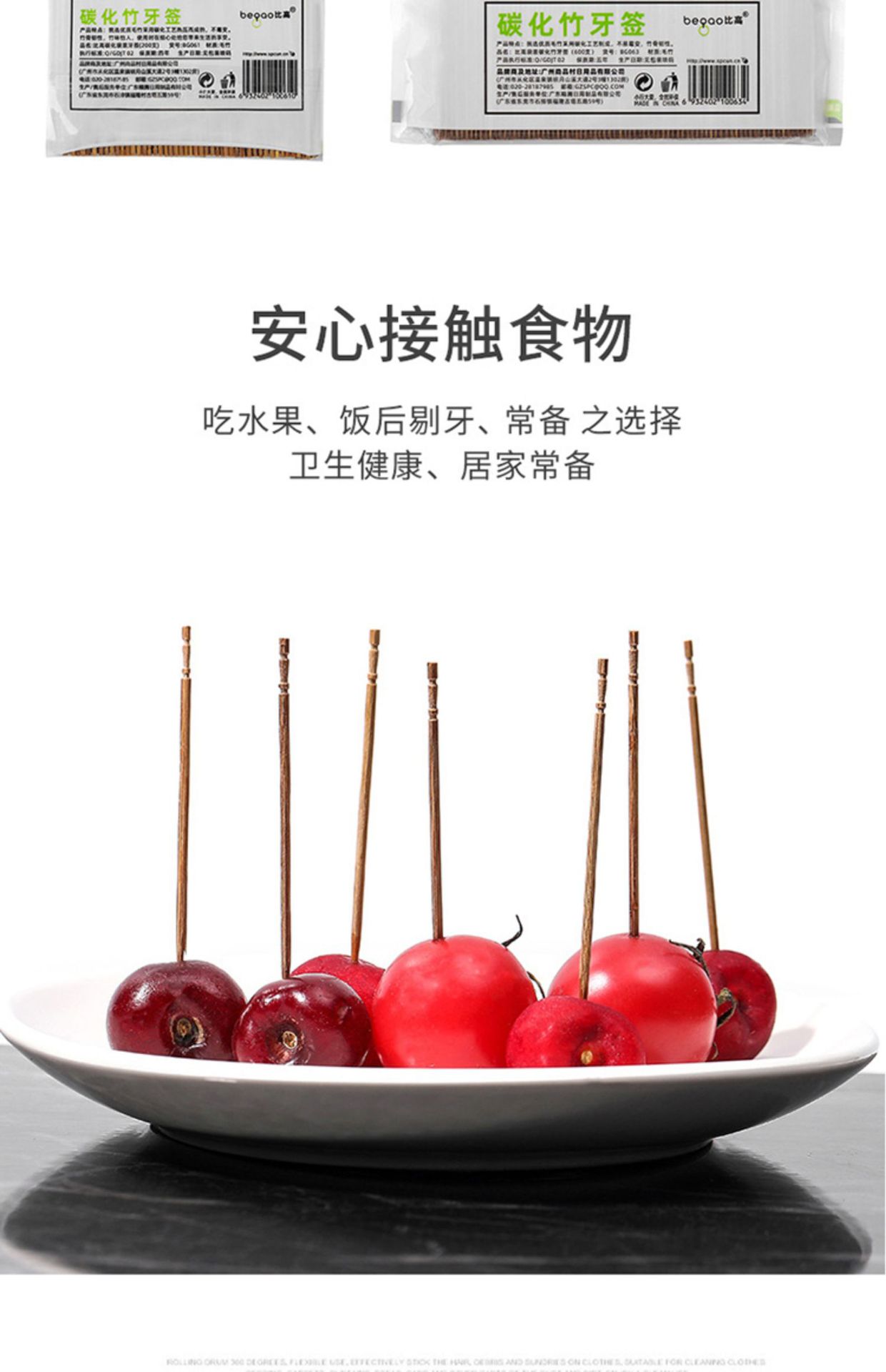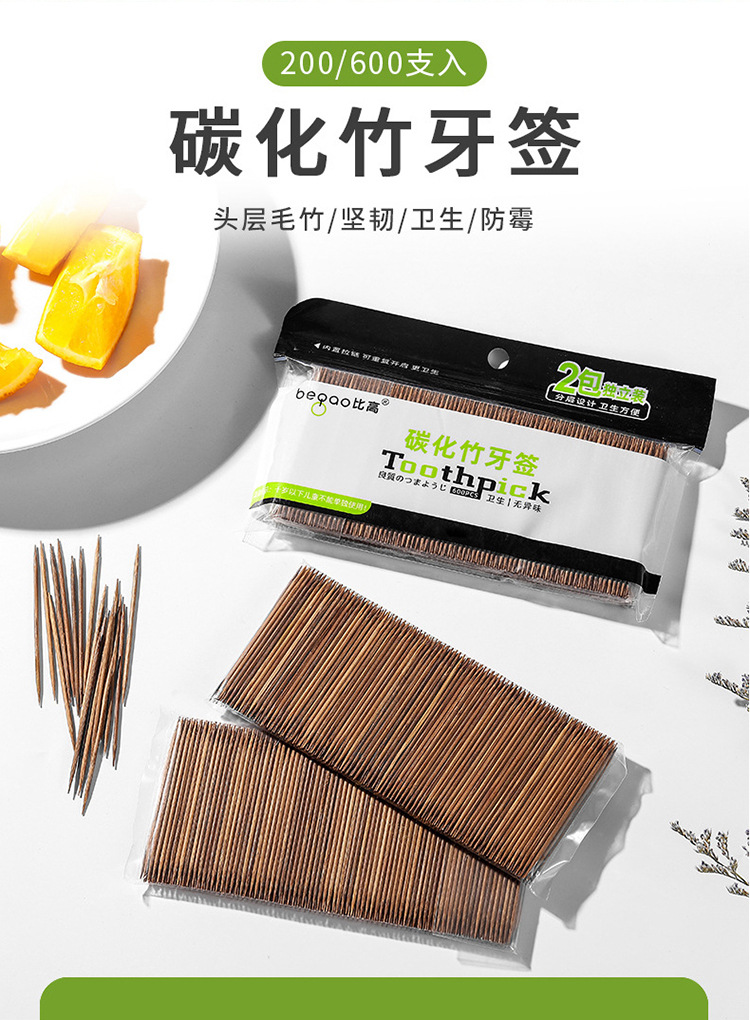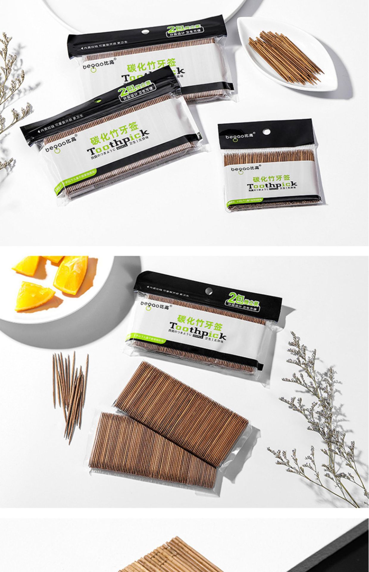 Palillo de dientes desechable hogar comercial de bambú carbonizado a prueba de moho palo de fruta portátil restaurante a granel palillo de dientes artefacto