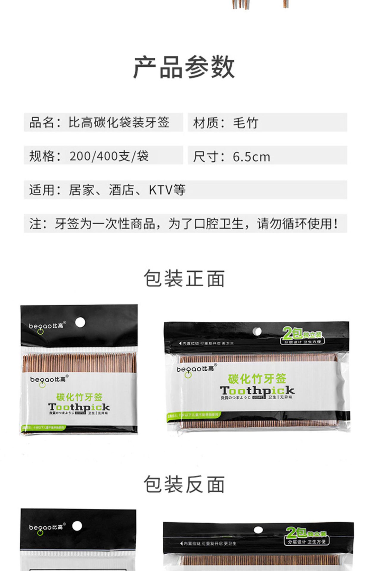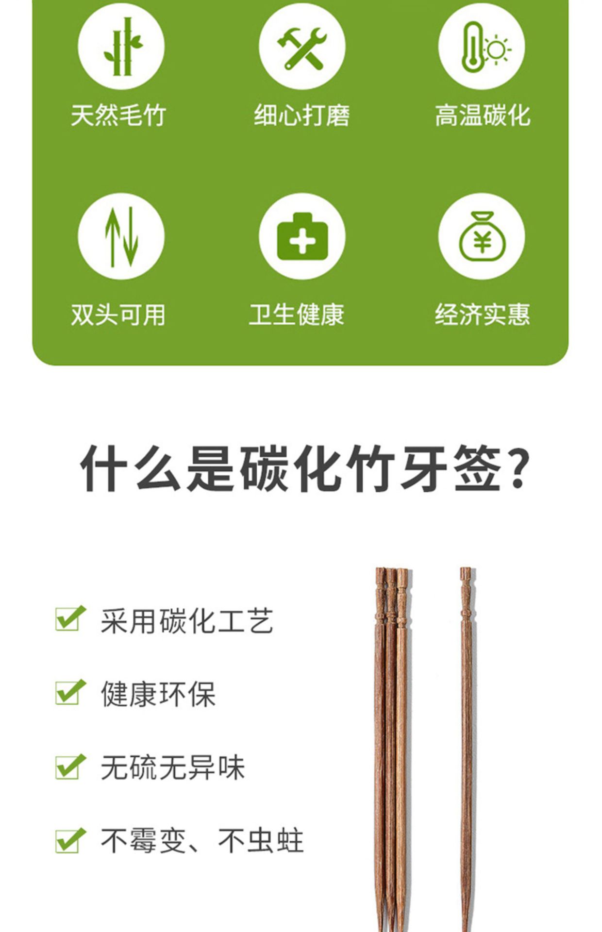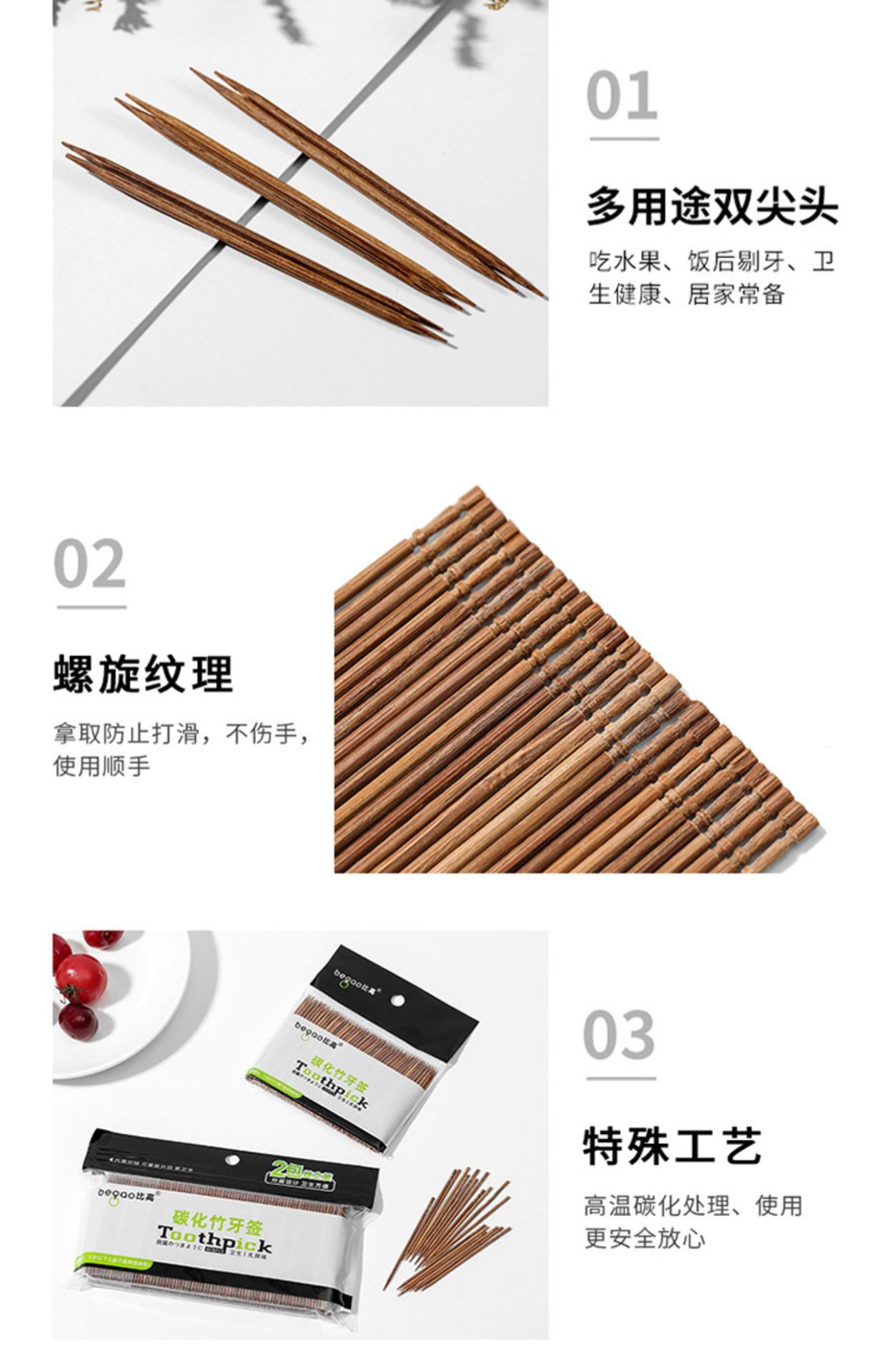 Palillo de dientes desechable hogar comercial de bambú carbonizado a prueba de moho palo de fruta portátil restaurante a granel palillo de dientes artefacto