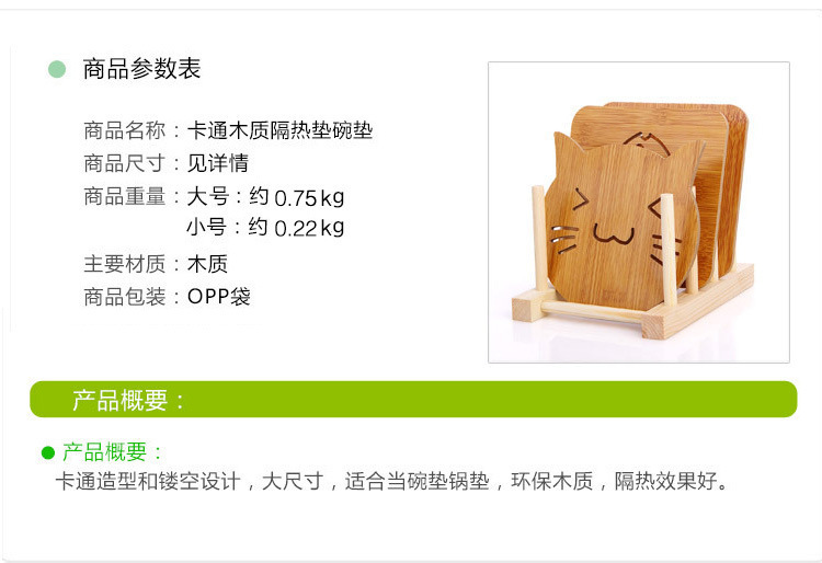 Cocina de bambú de madera hueca montaña engrosada de dibujos animados estera de aislamiento estera de mesa antideslizante olla estera tazón estera placa estera