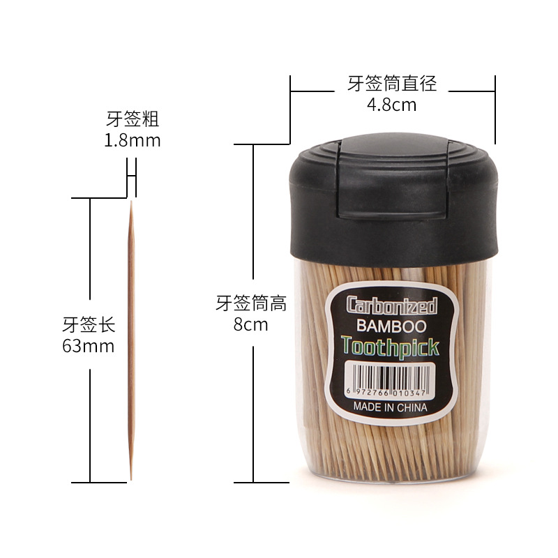 Palillo de dientes portátil en caja de plástico carbonizado palillo de dientes titular hotel restaurante creativo palillo de dientes botella palillo de dientes al por mayor