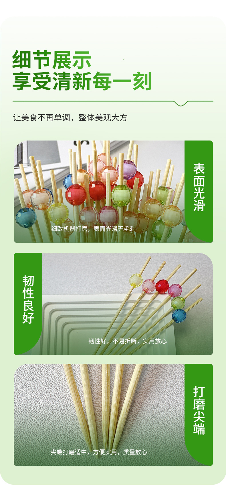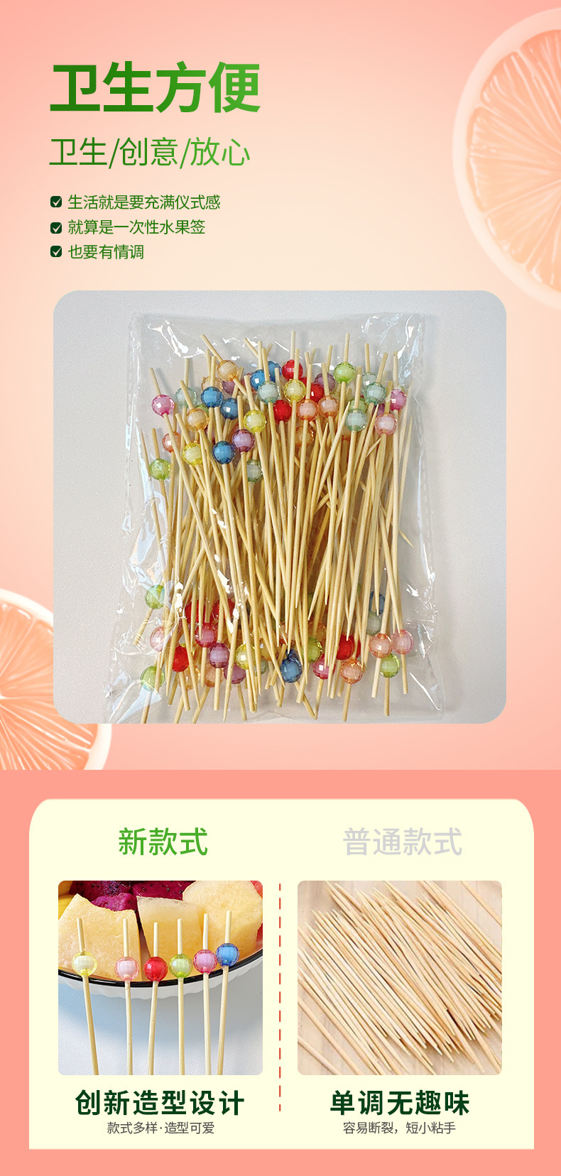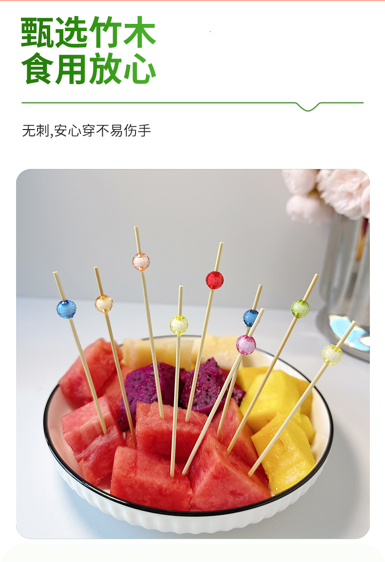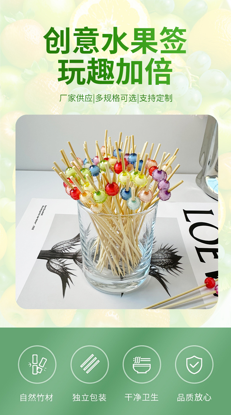圆珠一次性水果签冰糖葫芦串签三明治固定竹签可降解签跨境专供