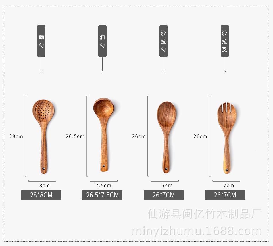 柚木实木锅铲 不粘锅煎铲炒菜厨具七件套 木铲子汤勺漏勺全套餐具