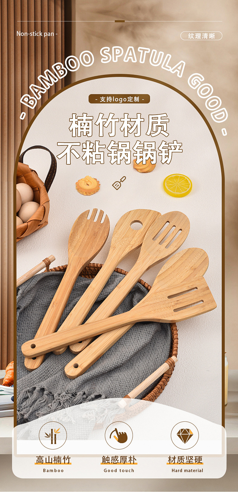 加厚竹制长柄锅铲大号不粘锅竹铲竹勺亚马逊厨房用具套装厂家批发