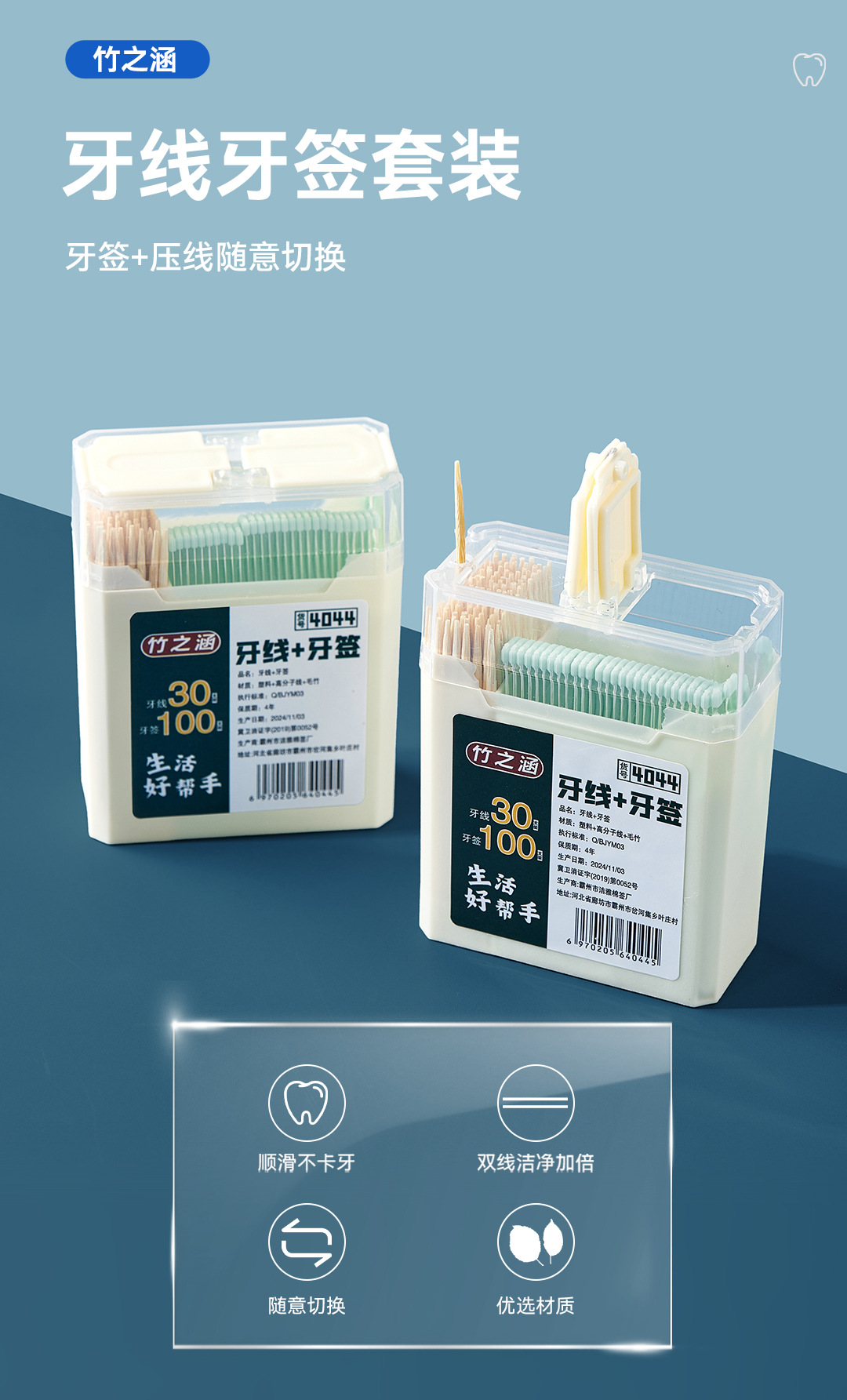 只数50-80只规格牙线30支+牙签100支弹盖盒装