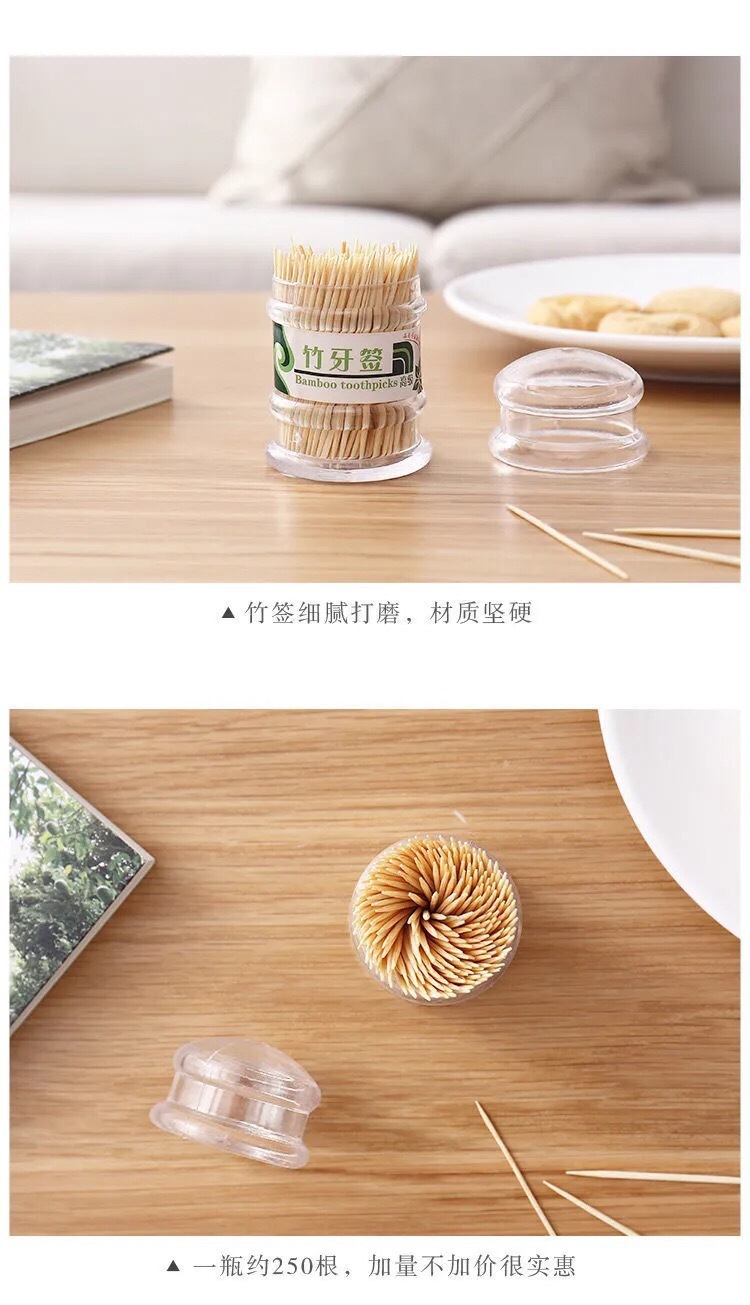 10-Pack Disposable Double-Ended Bamboo Toothpicks Wholesale Household Convenient Toothpick Box Personalized Creative Restaurant Bottle