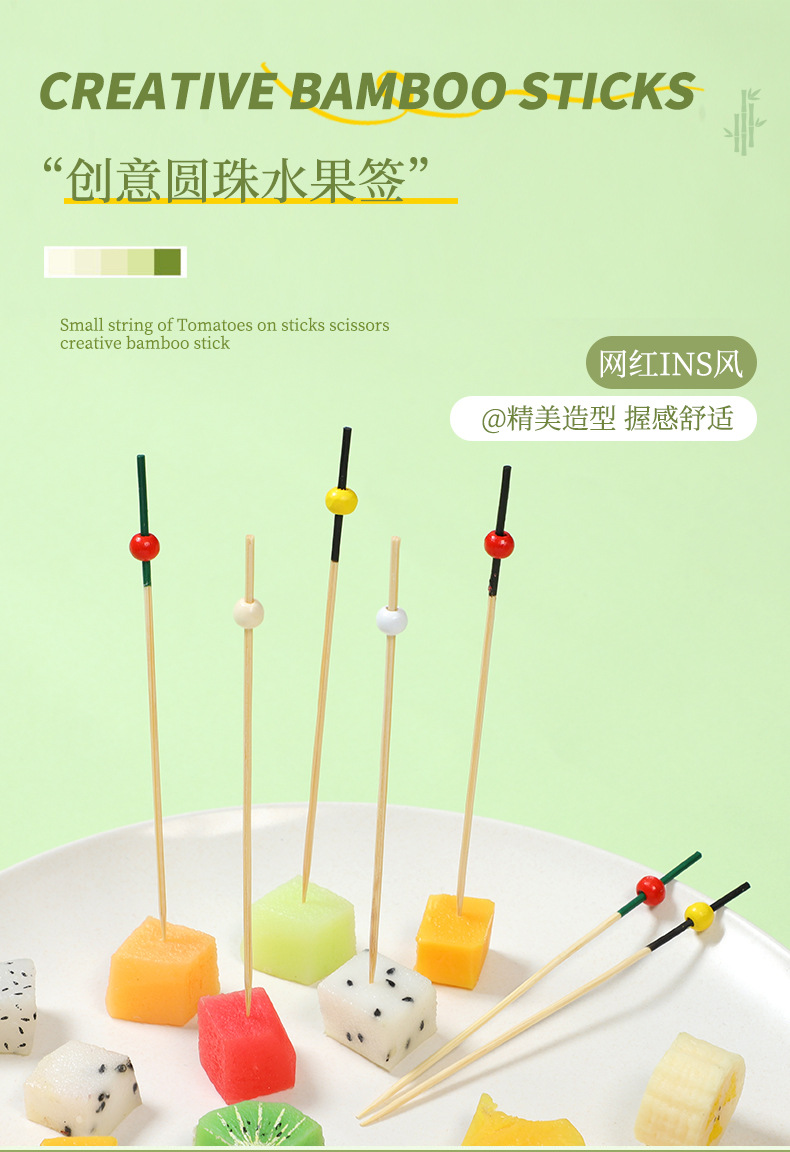 100/bag bamboo fruit stick fruit stick art cocktail pick toothpick creative string bamboo stick wholesale