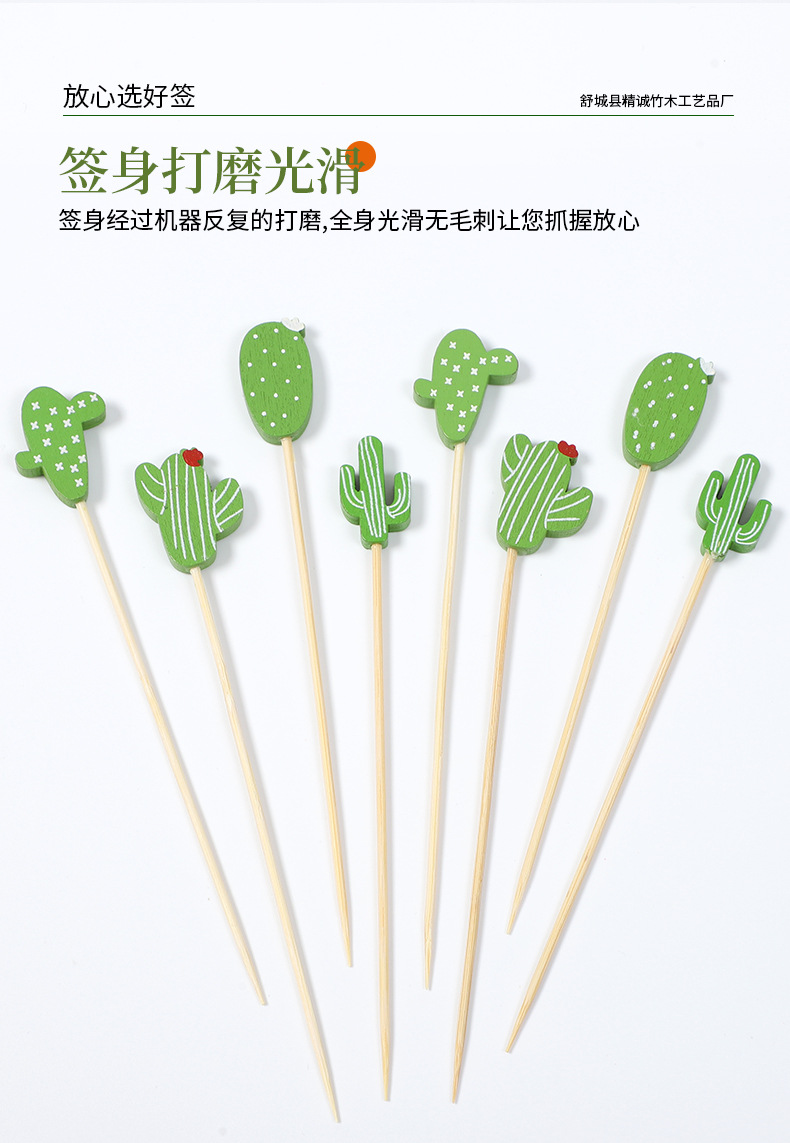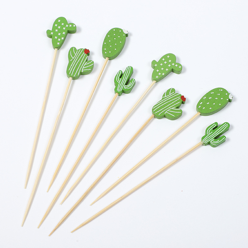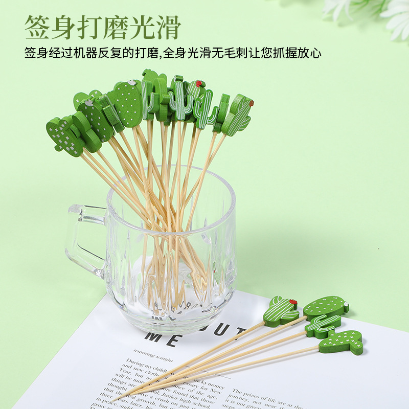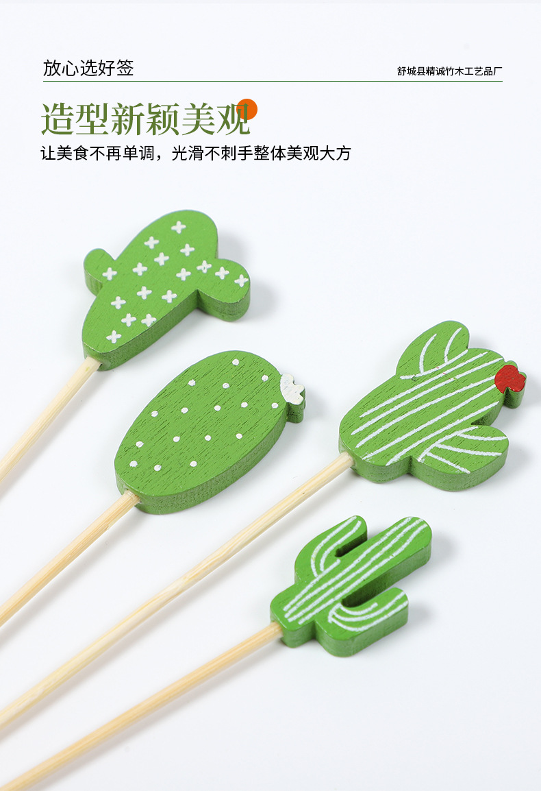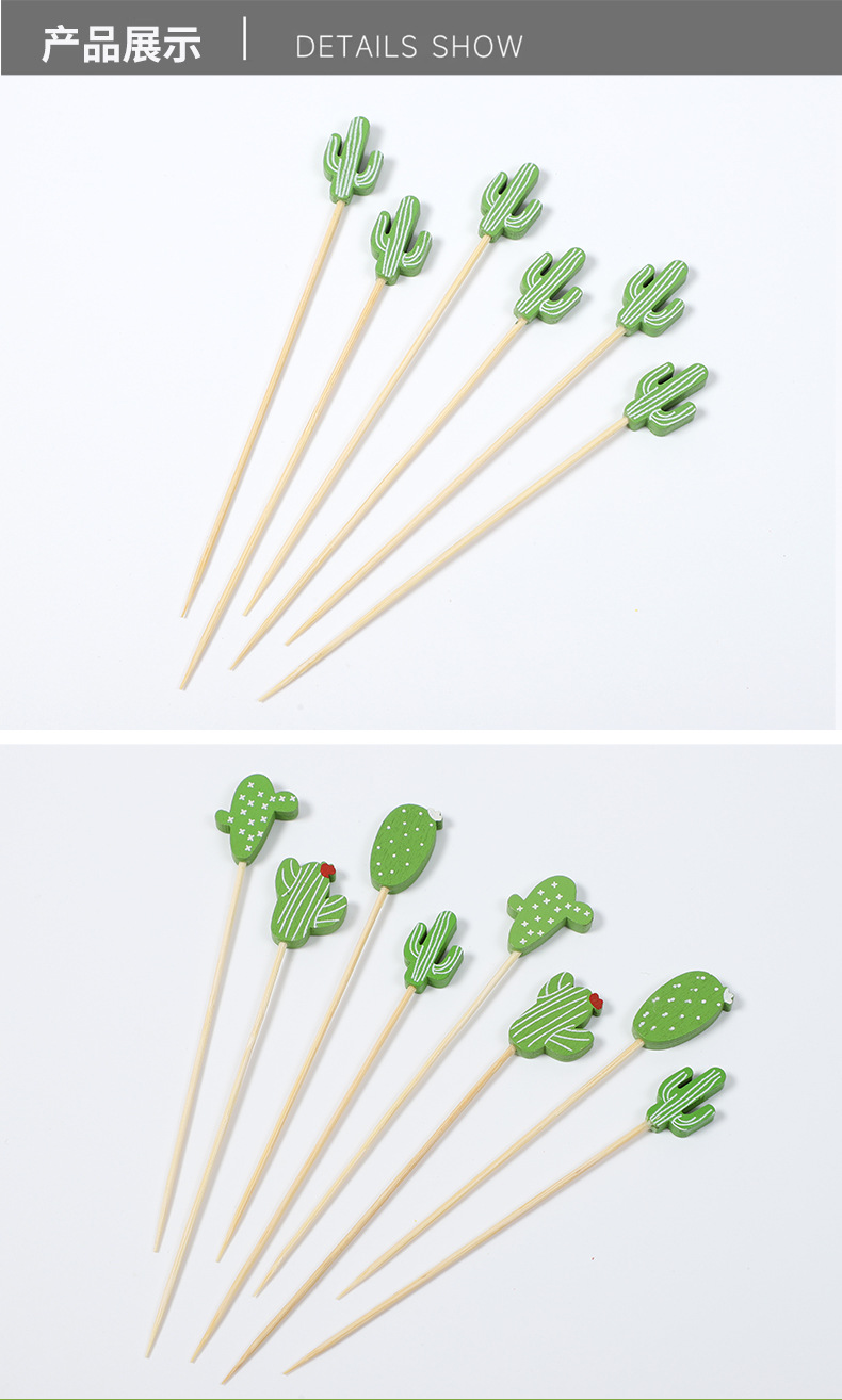 12cm art bamboo stick platter sushi hamburger cactus bamboo stick disposable fruit stick wholesale 100 pcs/bag