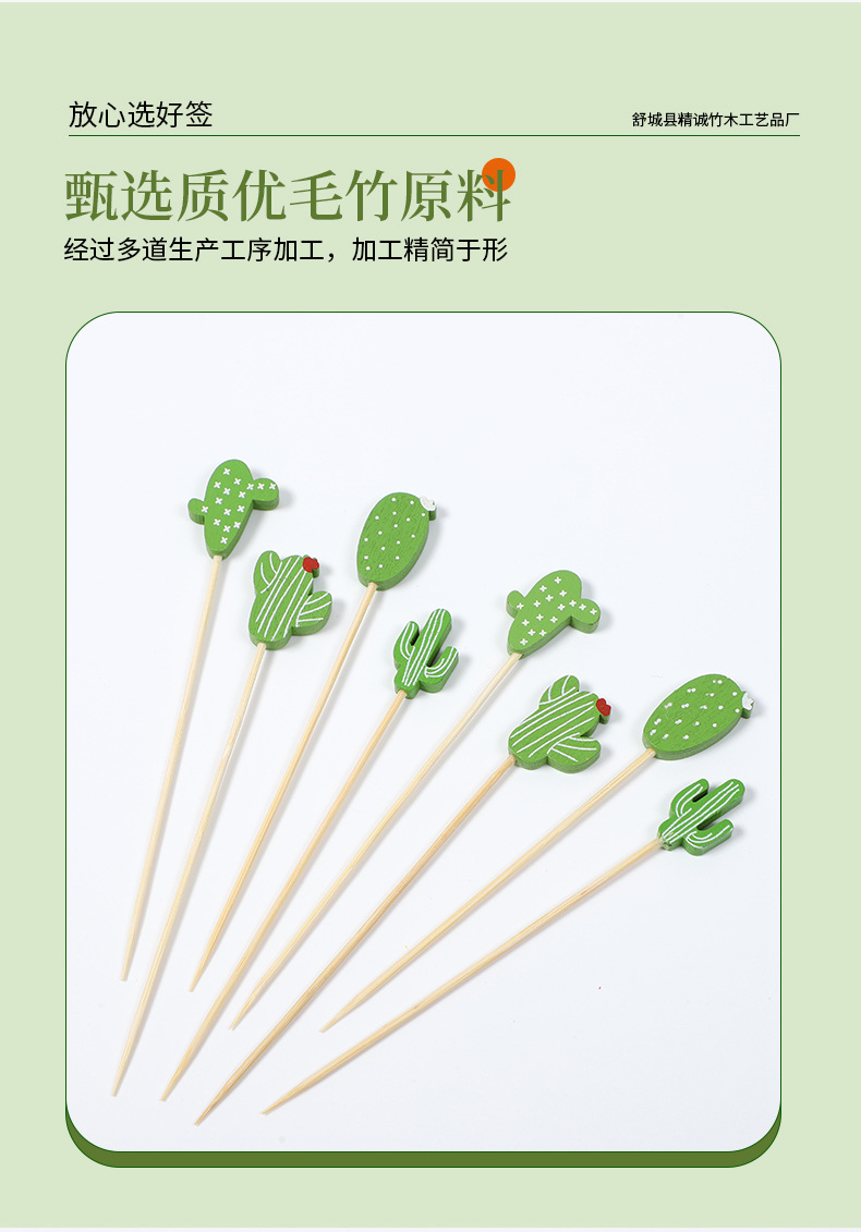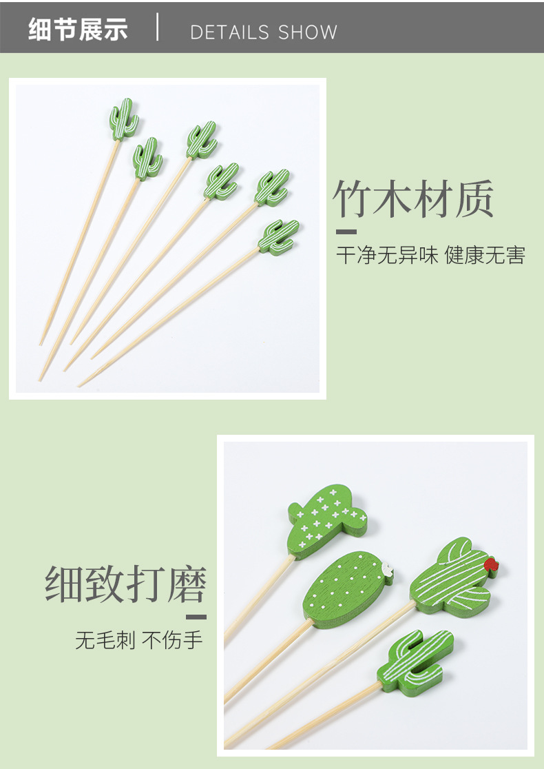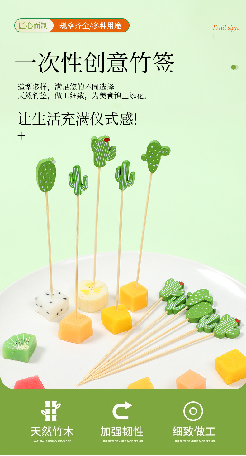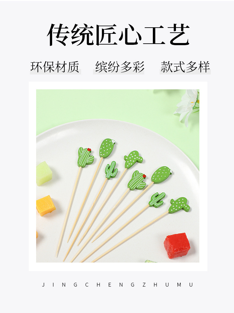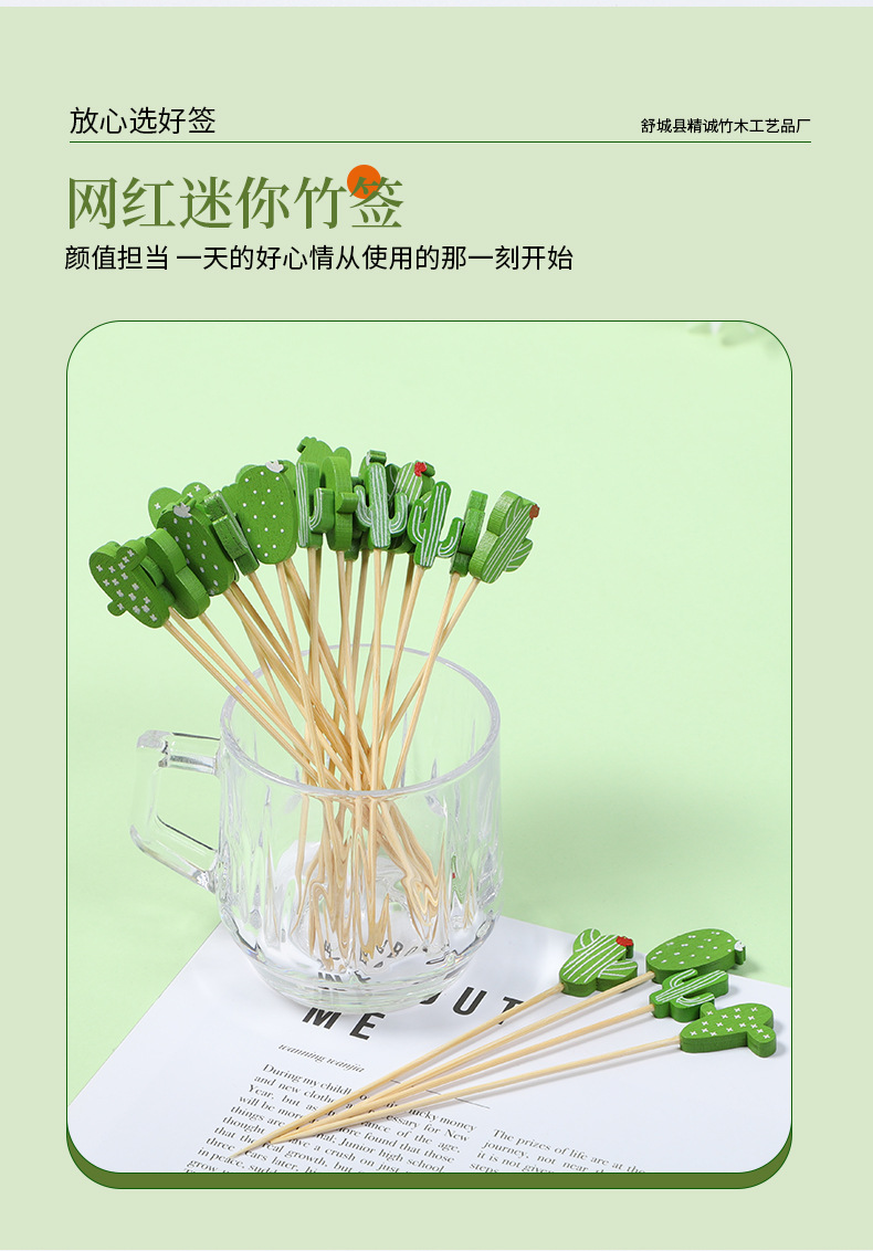 12cm art bamboo stick platter sushi hamburger cactus bamboo stick disposable fruit stick wholesale 100 pcs/bag