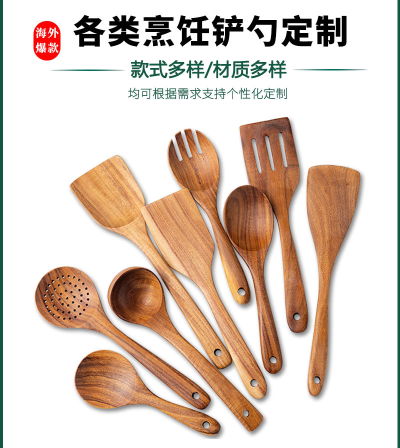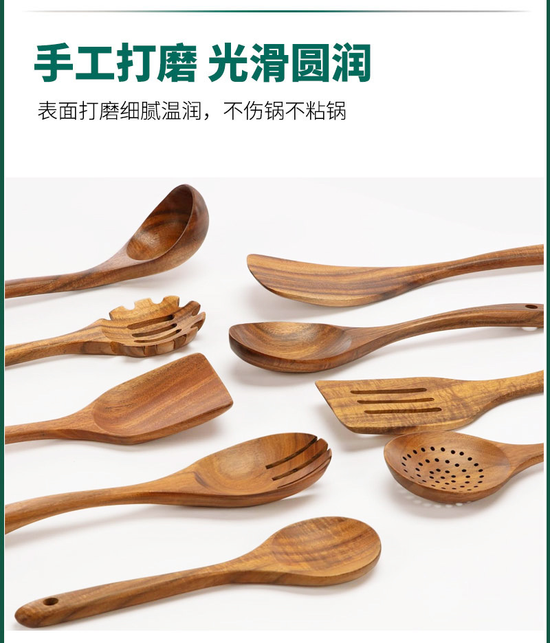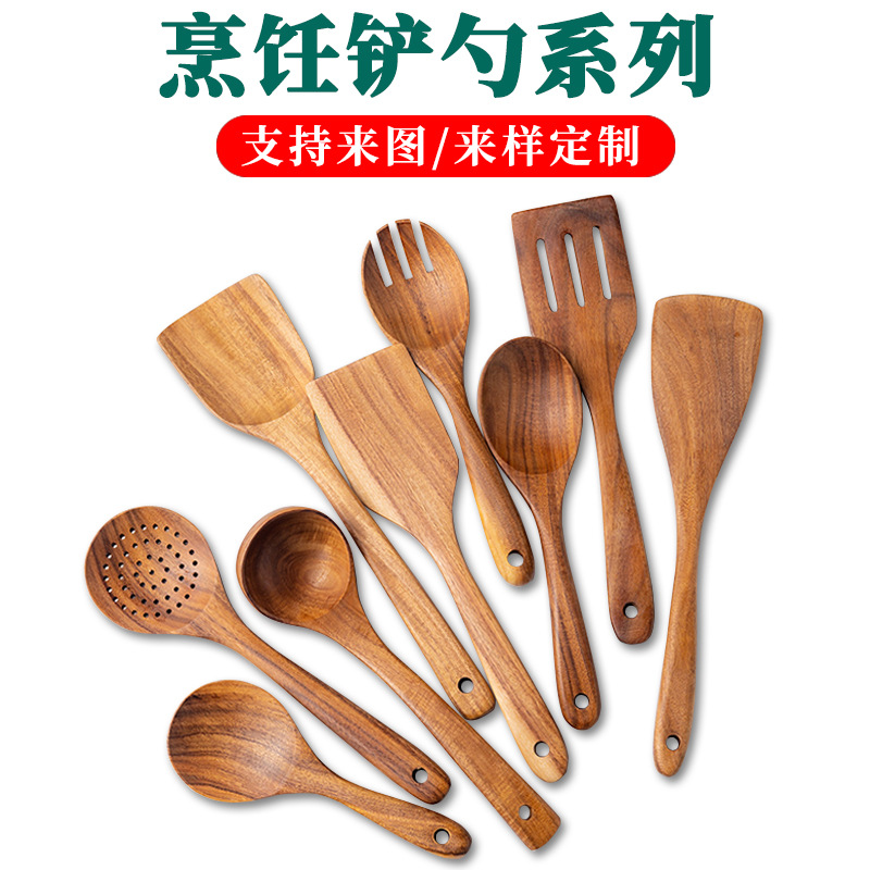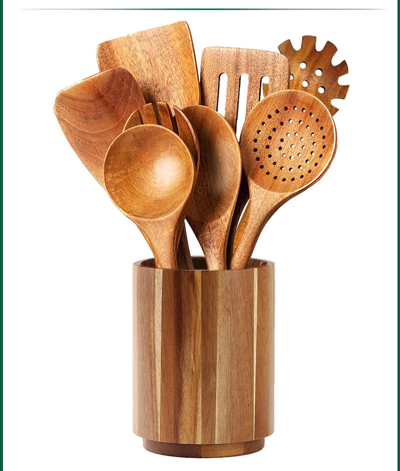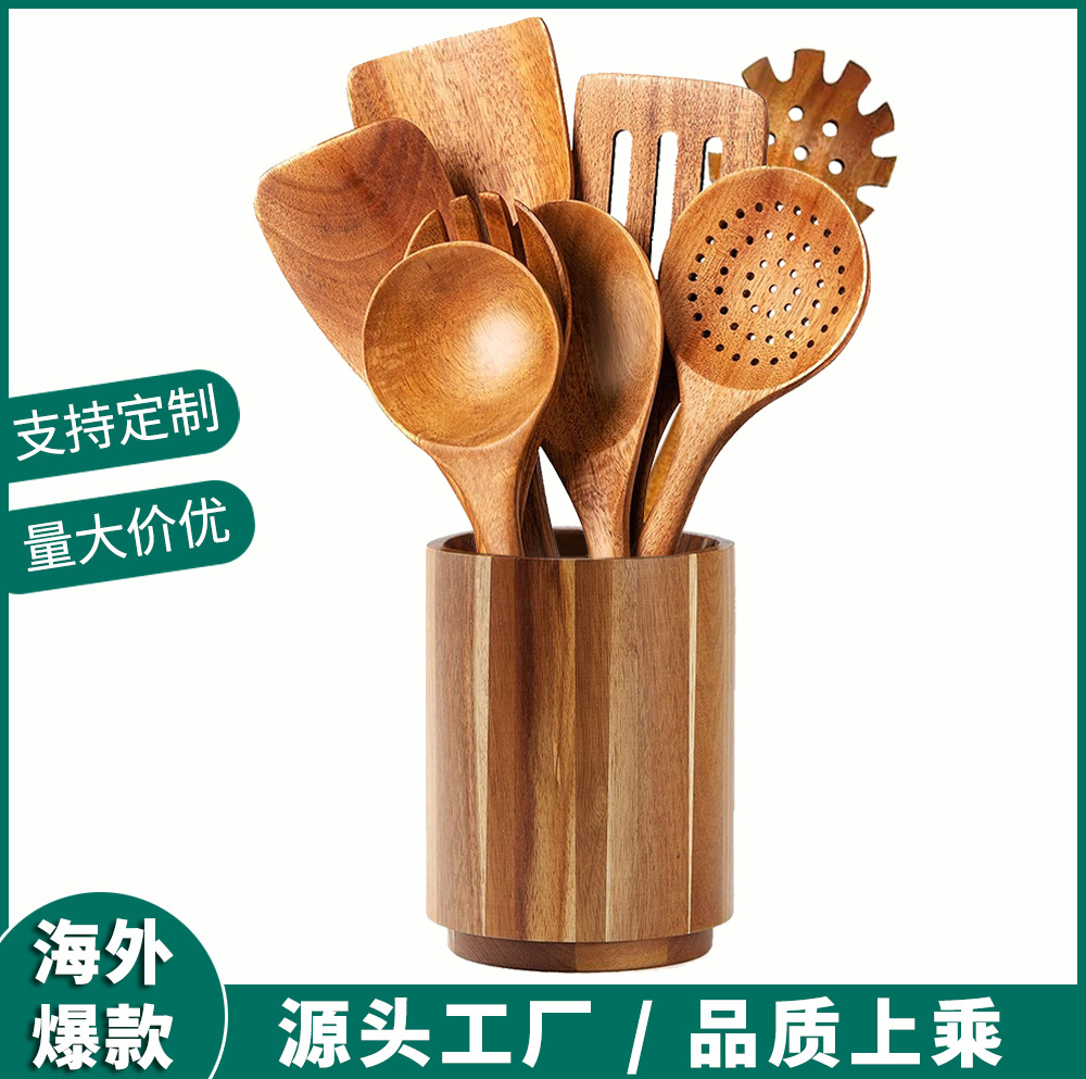 Acacia Wood Non-Stick Kitchen Utensils Wooden Spatula Long Handle Wooden Spatula Cooking Set Amazon Kitchen Tools