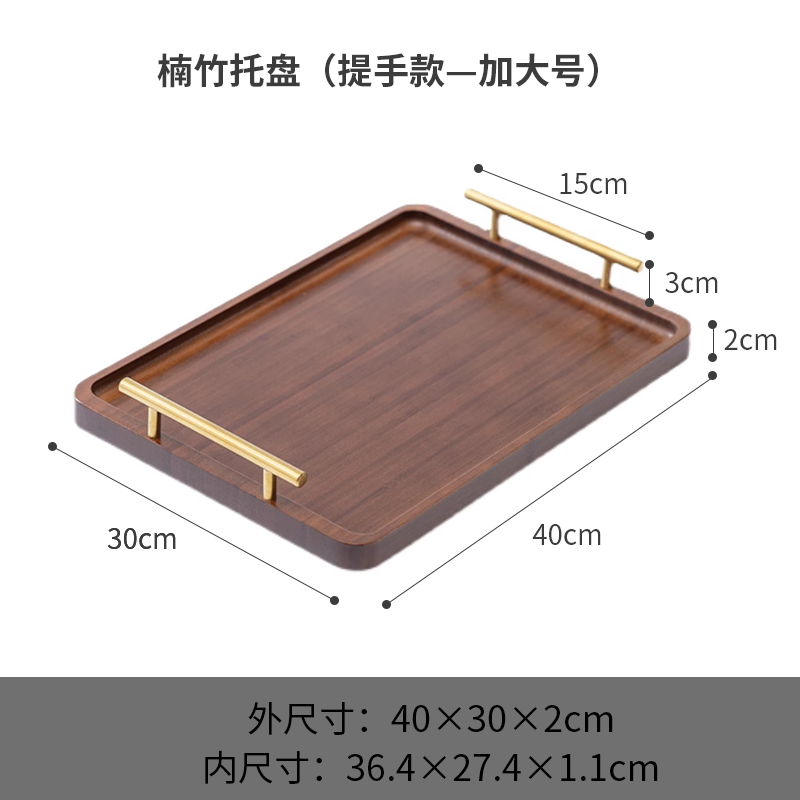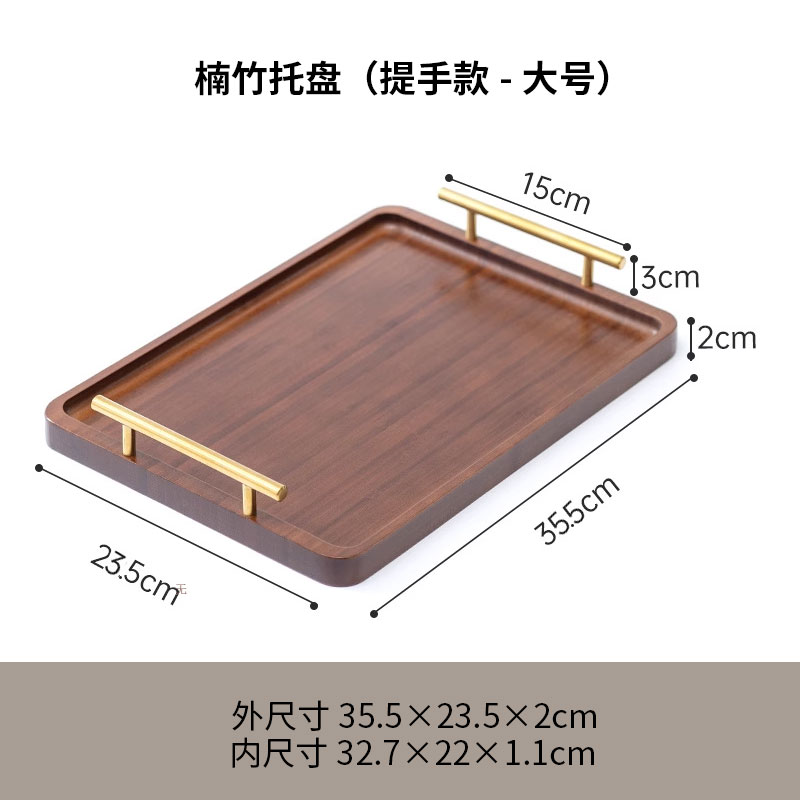 PlasticOtherSpecificationsNanzhu brown bamboo tray (without handle-small size) 30*20*2cm, Nanzhu brown bamboo tray (handle type - small size), Nanzhu brown bamboo tray (handle type - large size), Nanzhu brown bamboo tray (handle type - extra large) 40*30cm, Nanzhu brown bamboo tray (without handle-large size) 36*25*2cm, Nanzhu brown bamboo tray (without handle - extra large) 40*30*2cm, Original color bamboo tray (handle type - small size), Original color bamboo tray (handle type - large size), Original color bamboo tray (handle type - extra large size), Large tray with handle + 6 square bowls with gold rim, Large tray with handle + 6 gold-rimmed square bowls (with lid)