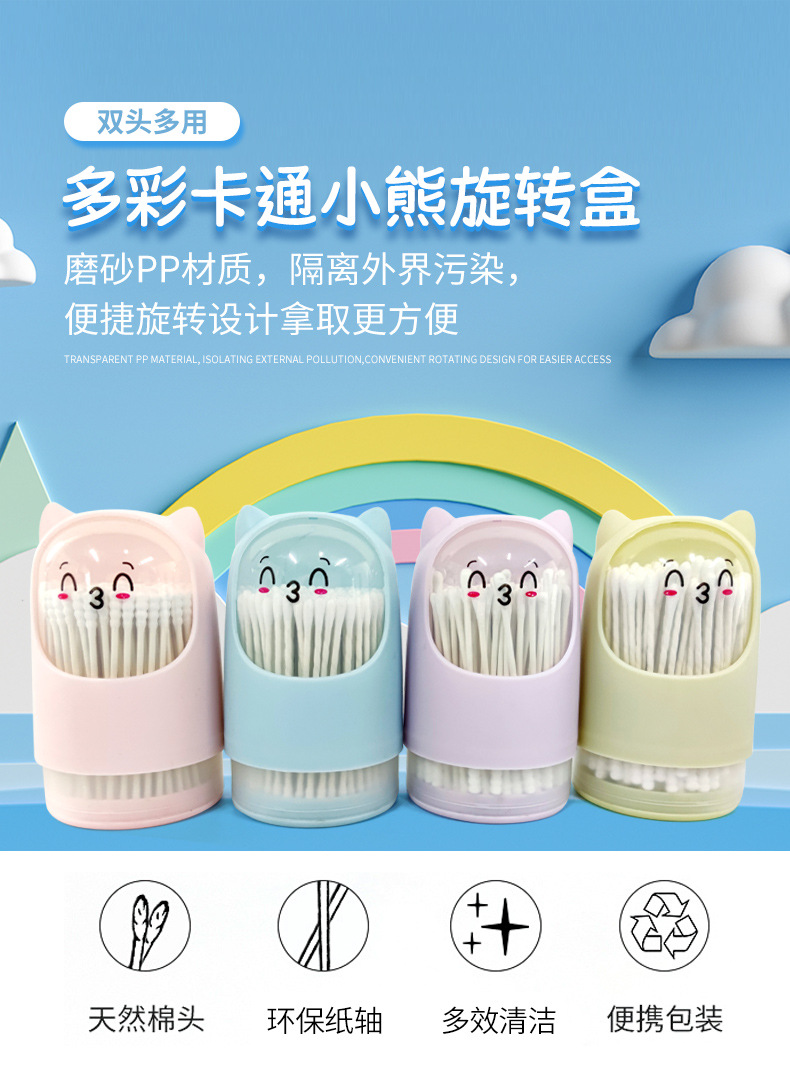 Baby Cotton Swabs, Cartoon Cotton Swabs for Toddlers, Double-Ended Ultra-Fine Cotton Swabs, Disposable Cotton Swabs, Ear-Picking Small-Head Cotton Packs