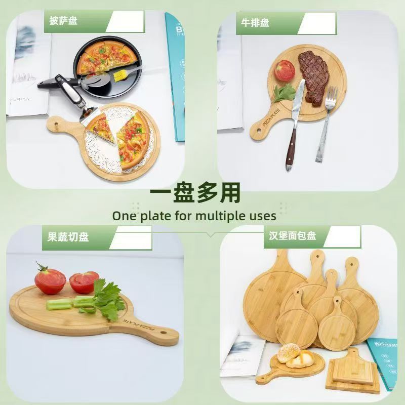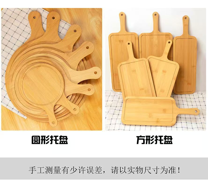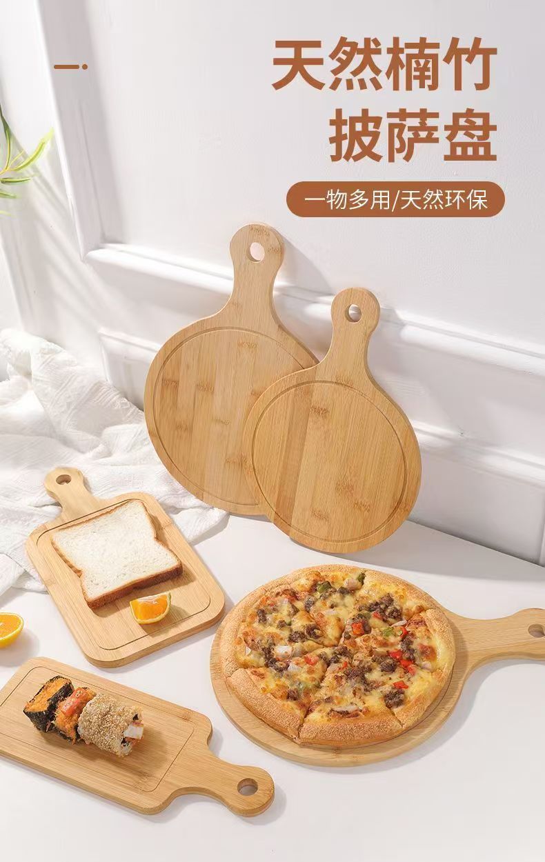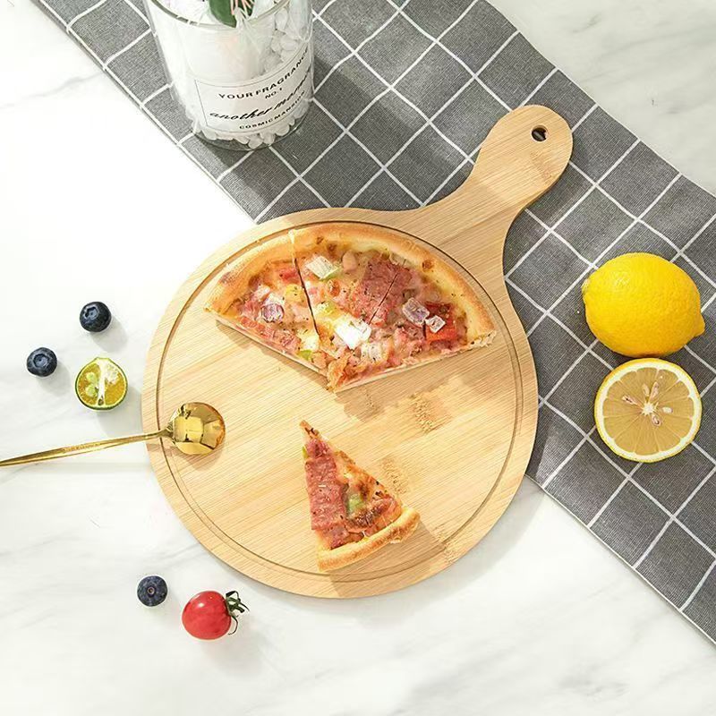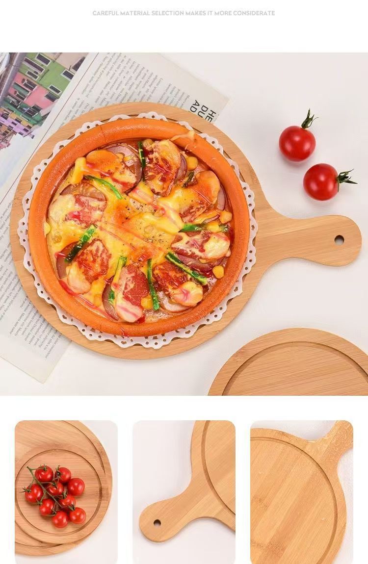 Bamboo and Wood Dining Pizza Tray Solid Wood Dessert Tray Western Steak Cake Bread Sushi Wooden Round Pizza Board