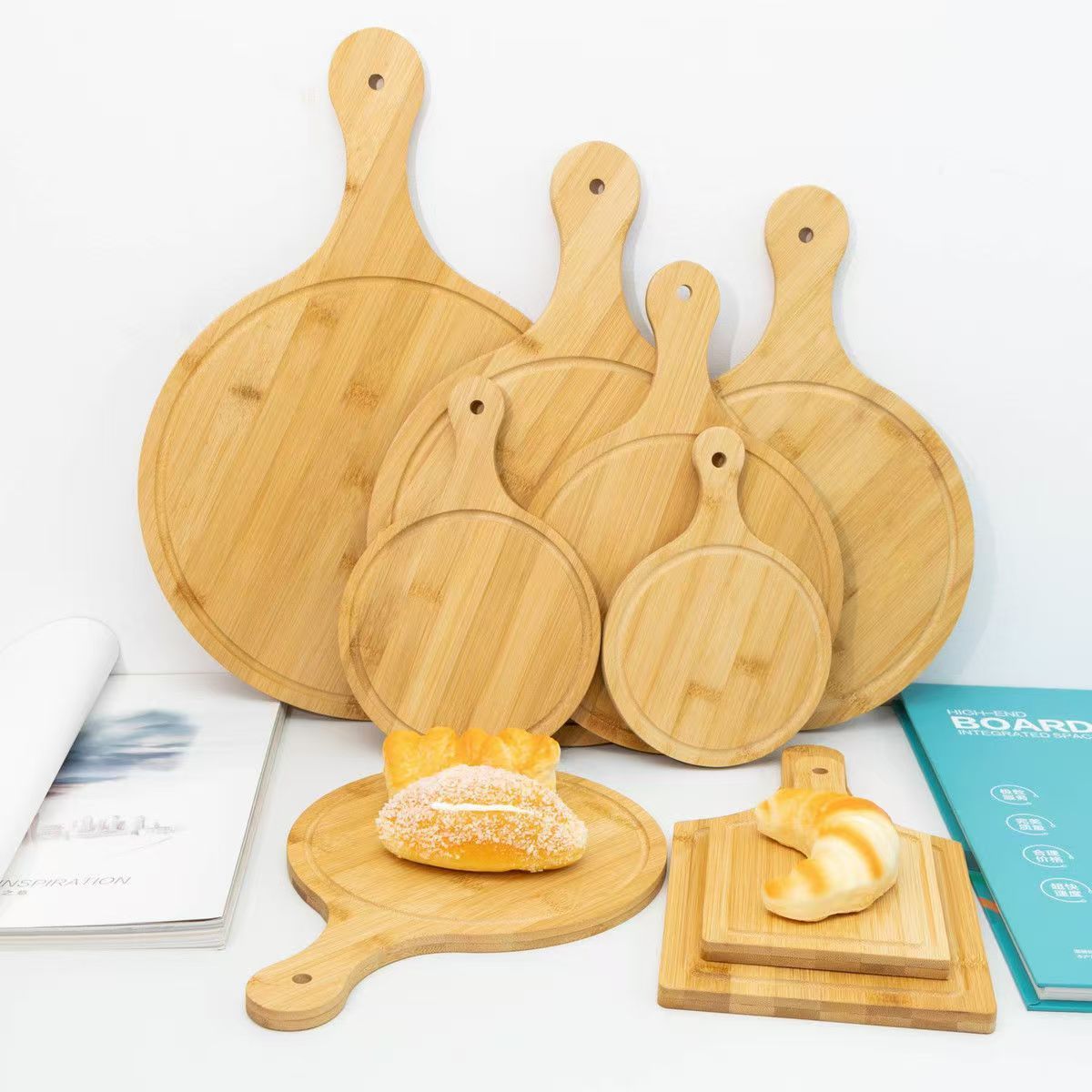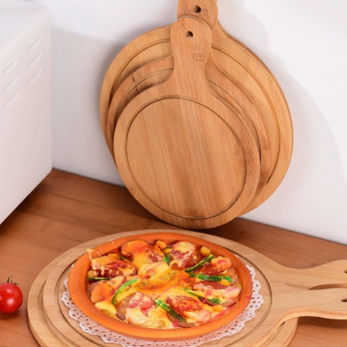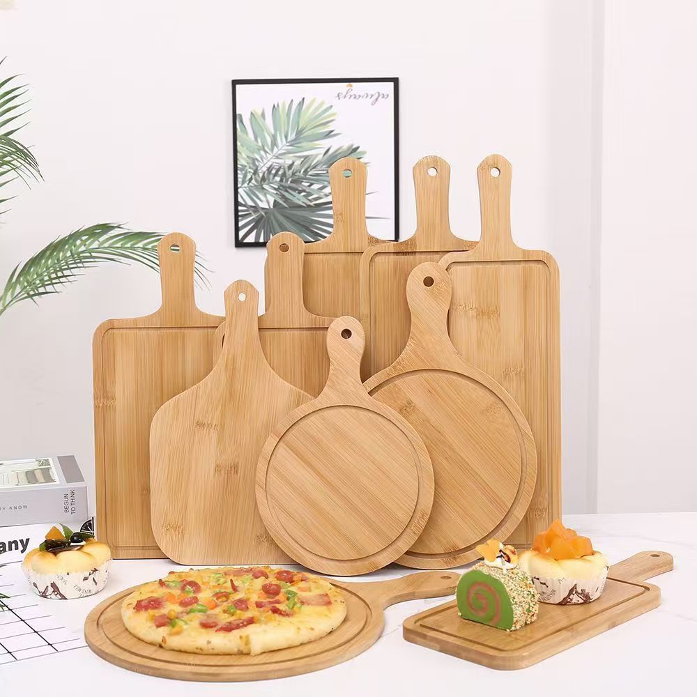 Bamboo and Wood Dining Pizza Tray Solid Wood Dessert Tray Western Steak Cake Bread Sushi Wooden Round Pizza Board