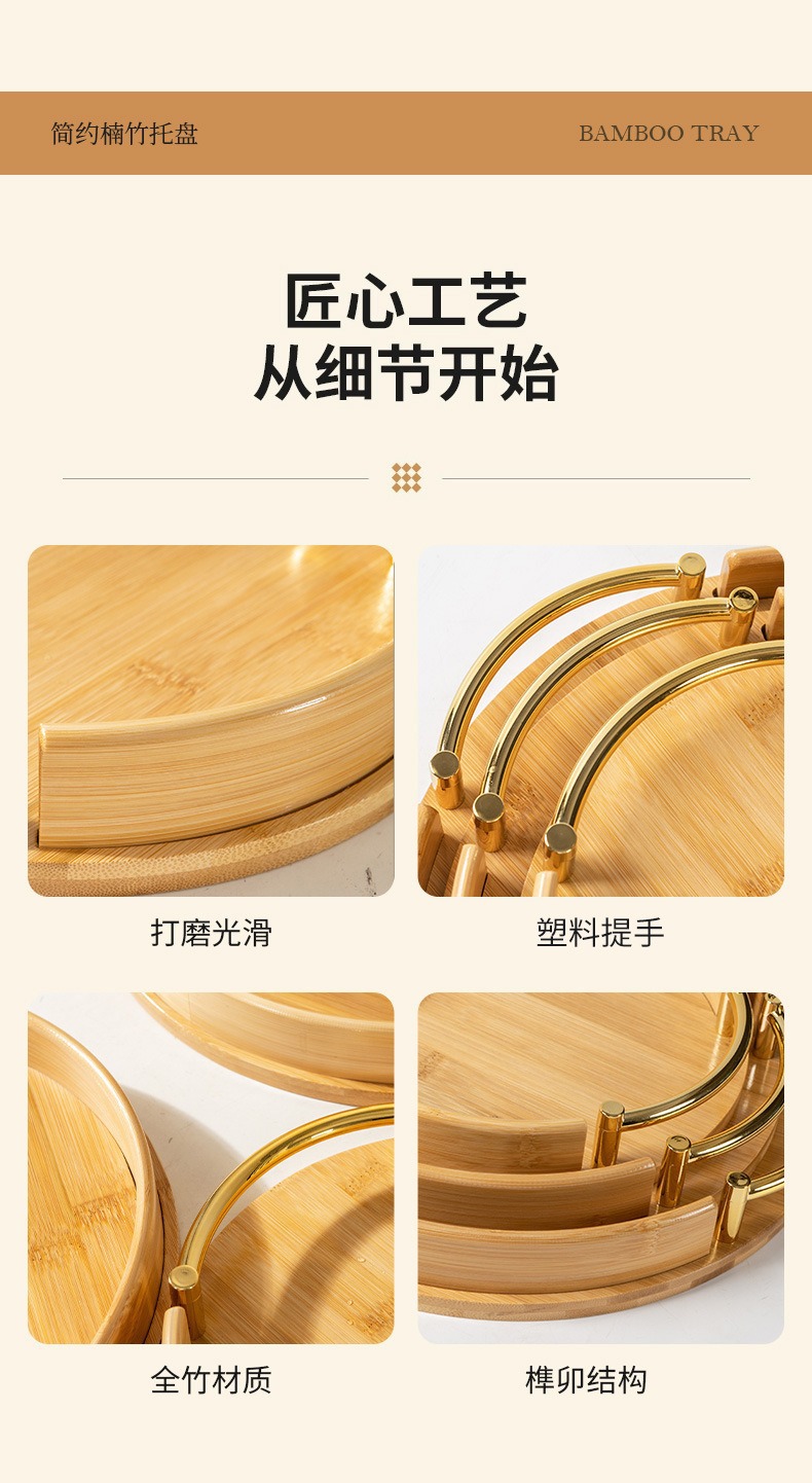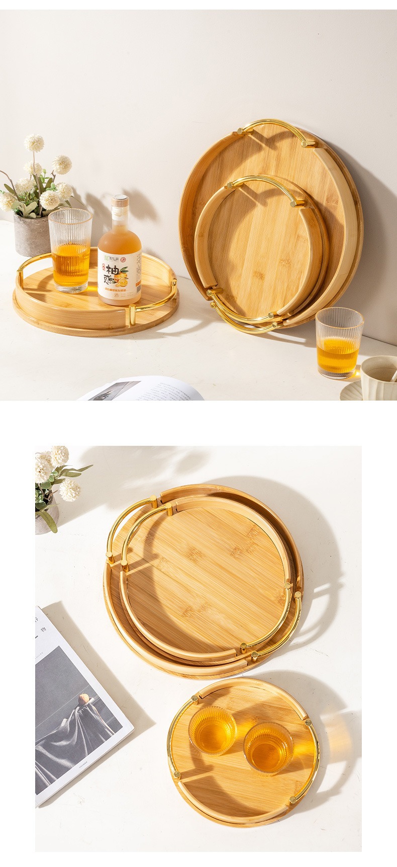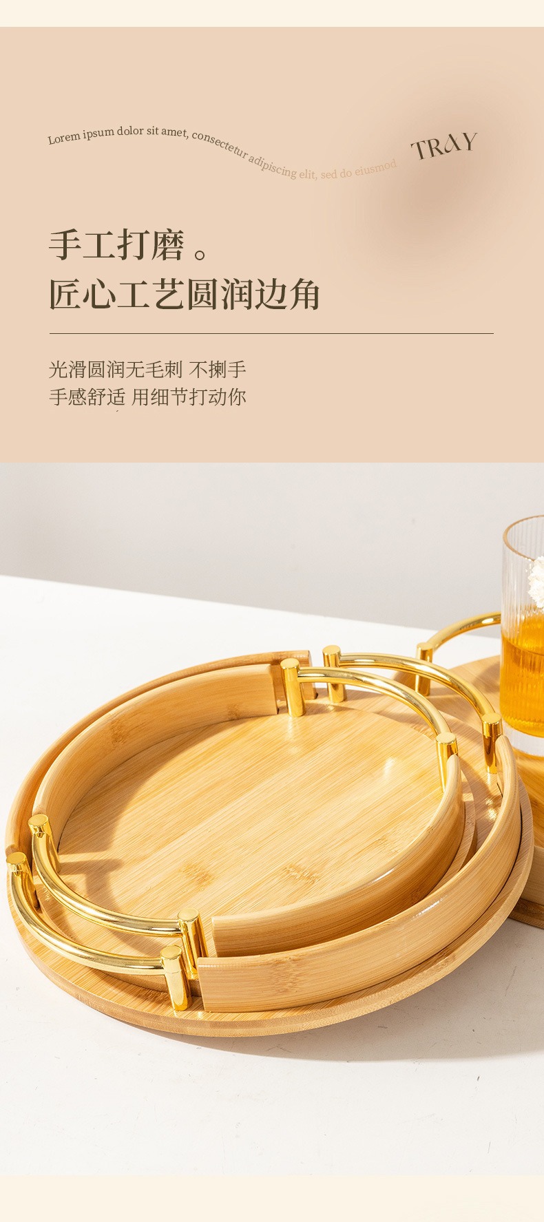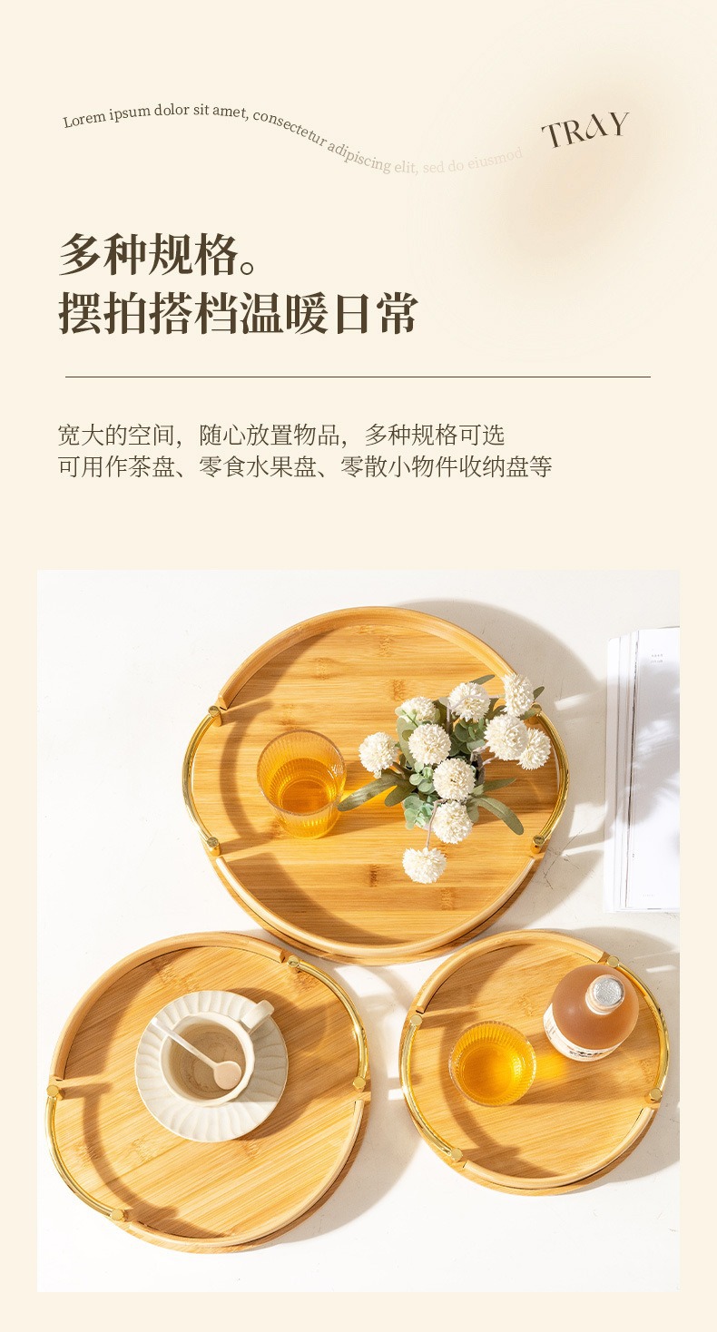 Bamboo Round Tray Household Living Room Tea Cup Storage Tray Tea Set Dining Tray Creative Fruit Plate