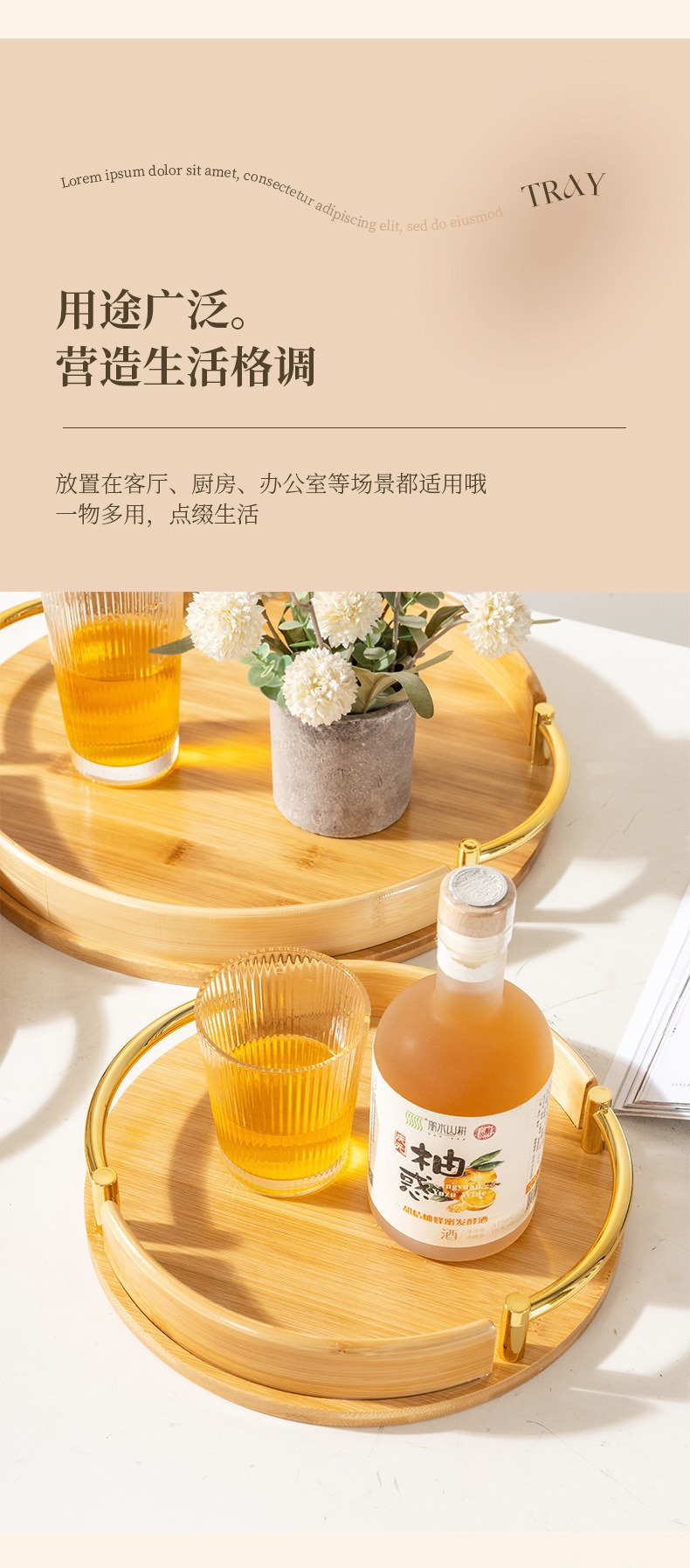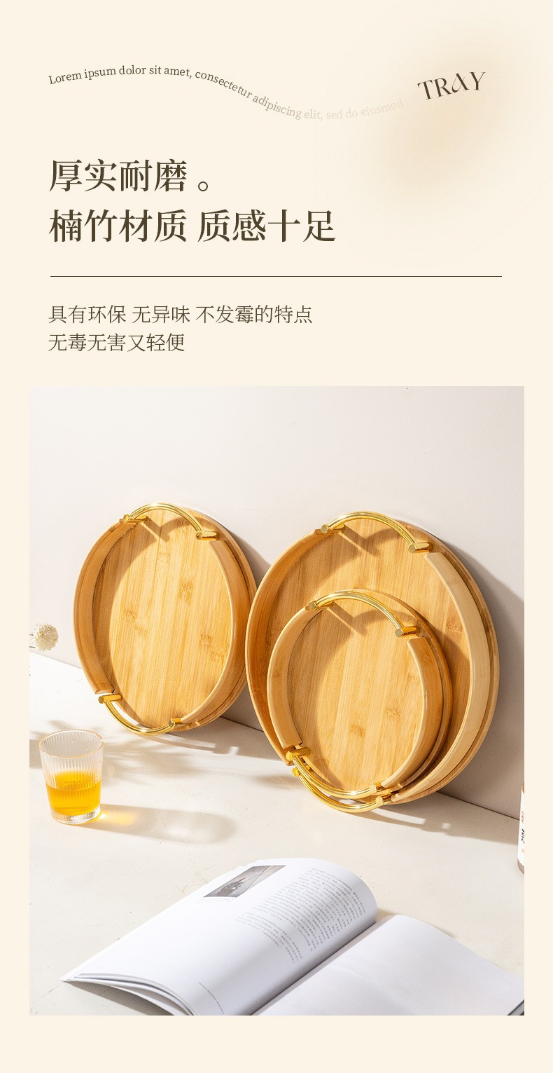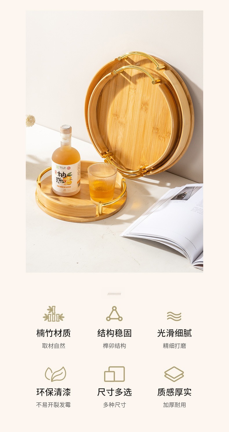 Bamboo Round Tray Household Living Room Tea Cup Storage Tray Tea Set Dining Tray Creative Fruit Plate