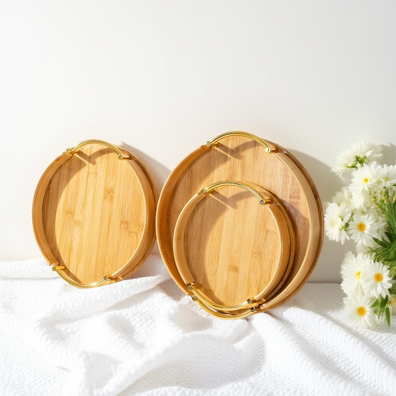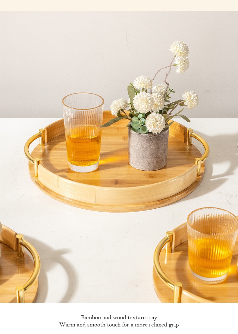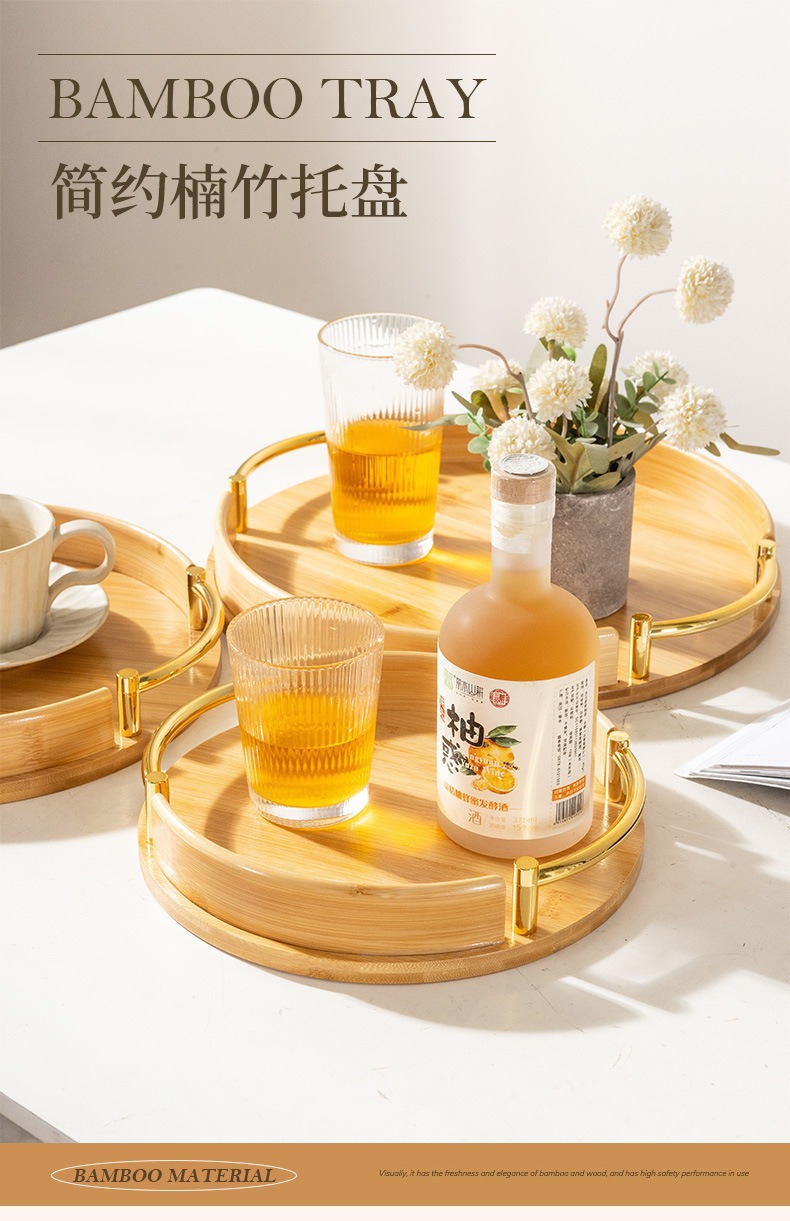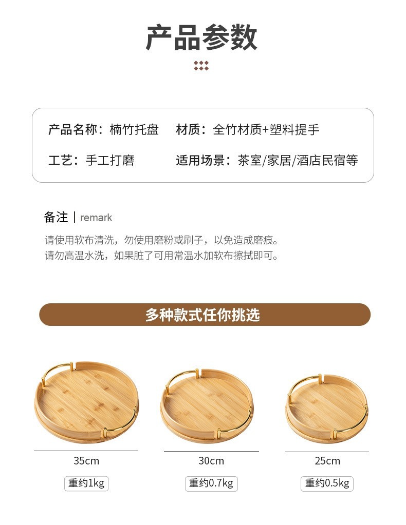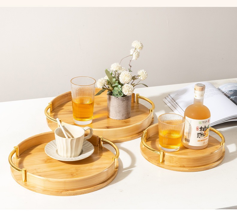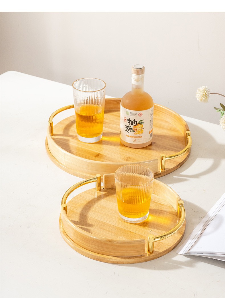 Bamboo Round Tray Household Living Room Tea Cup Storage Tray Tea Set Dining Tray Creative Fruit Plate