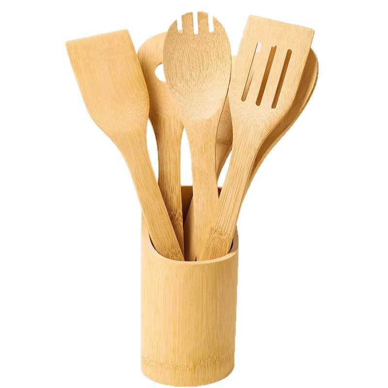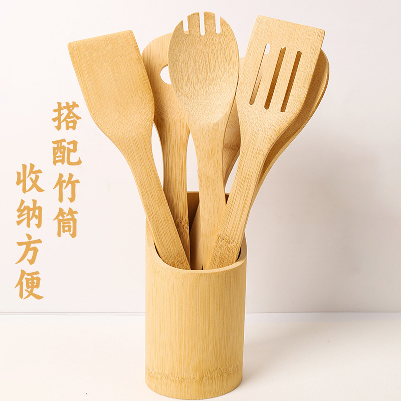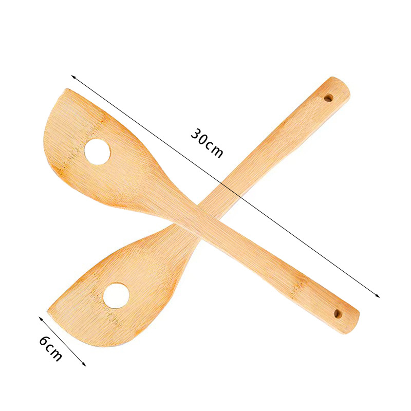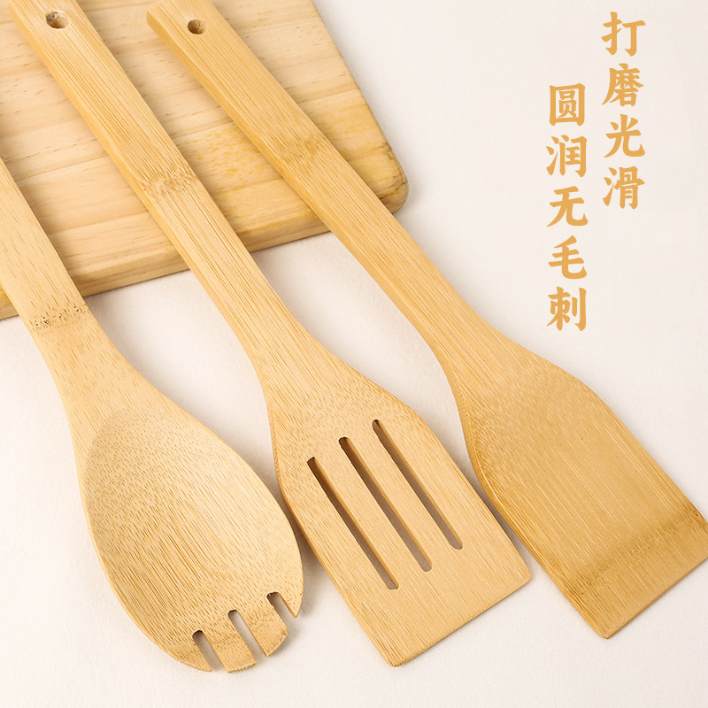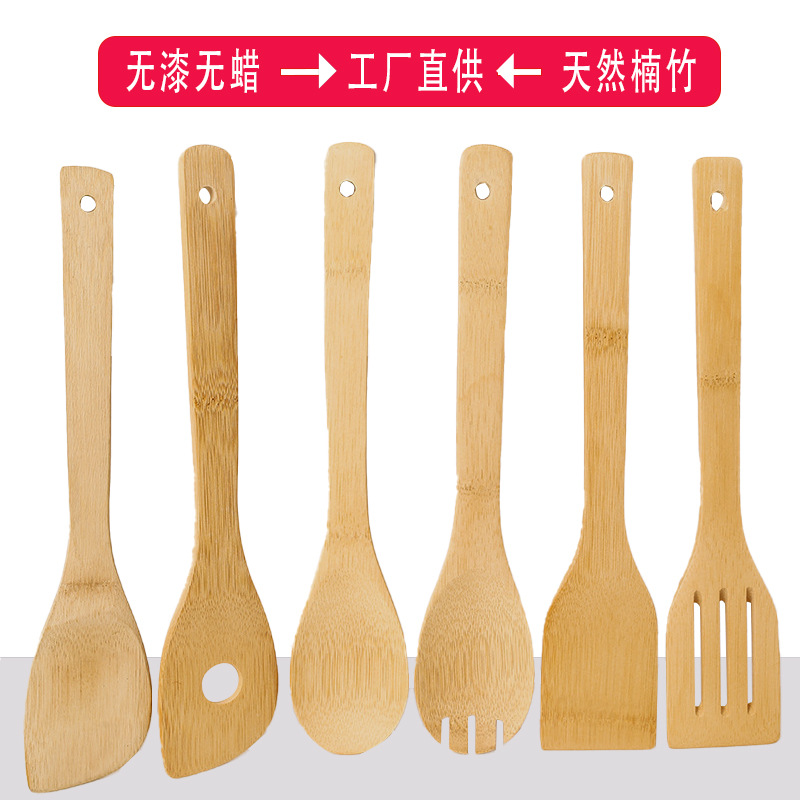 Bamboo Shovel Kitchen Utensils 30cm Six-Piece Set of Shovel Bamboo Spoon Can Be Engraved with High Temperature Resistant Rice Spoon and Soup Spoon Factory Direct Supply