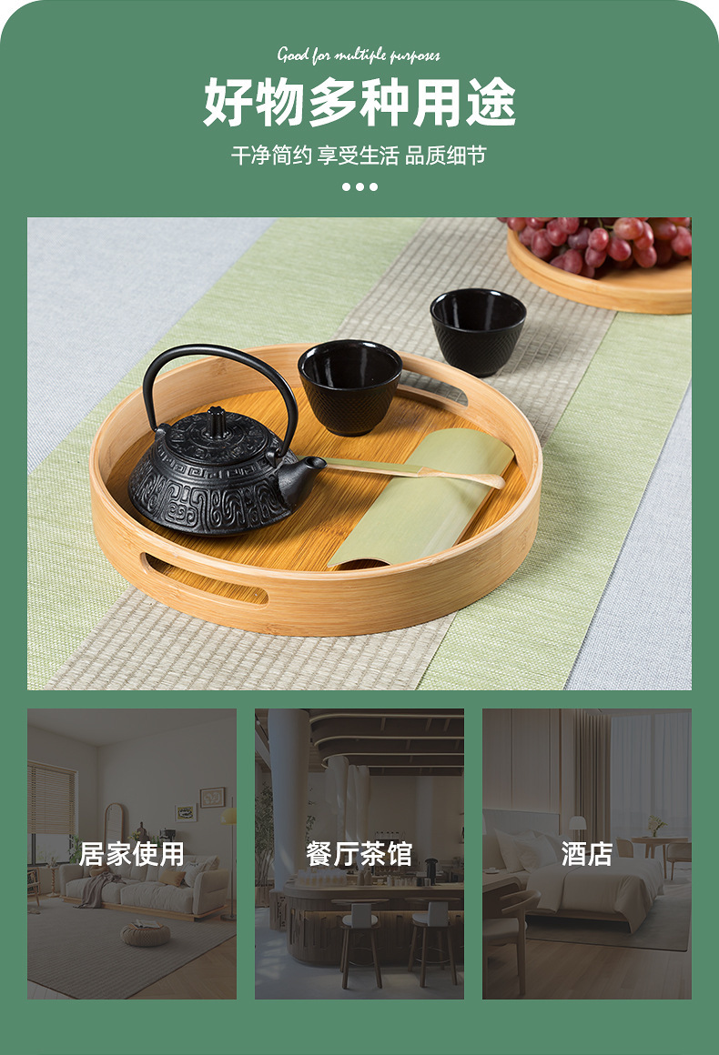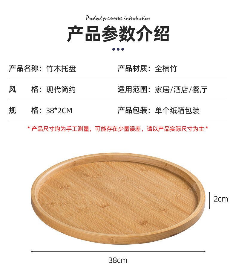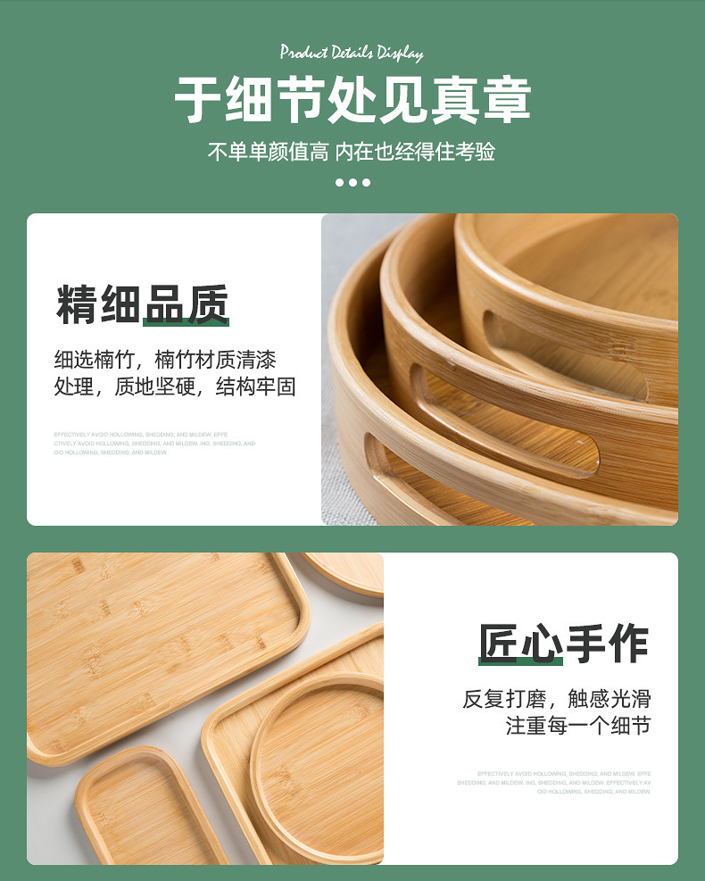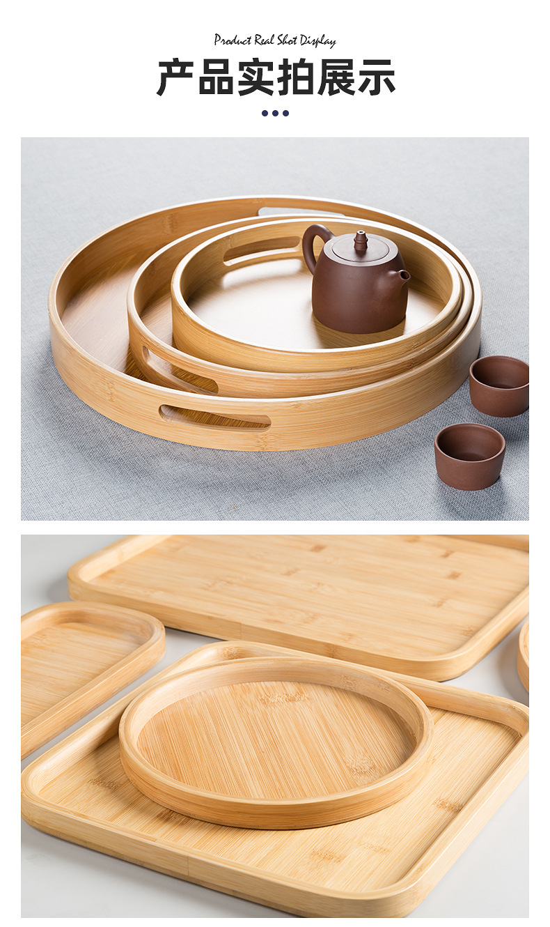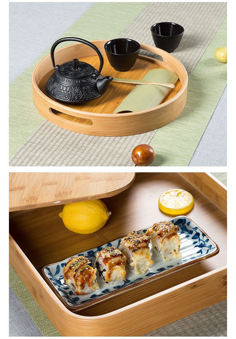 Bamboo Tray Japanese Bread Tray Wooden Tray Rectangular Round Tea Tray Bamboo Wood Household Tea Cup Tray Fruit Tray