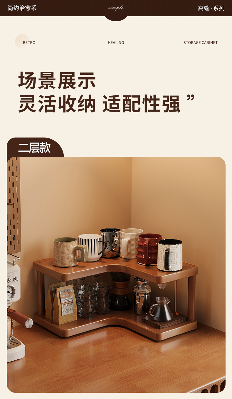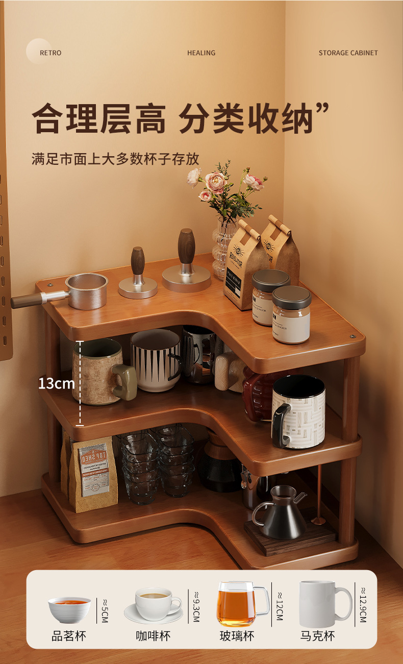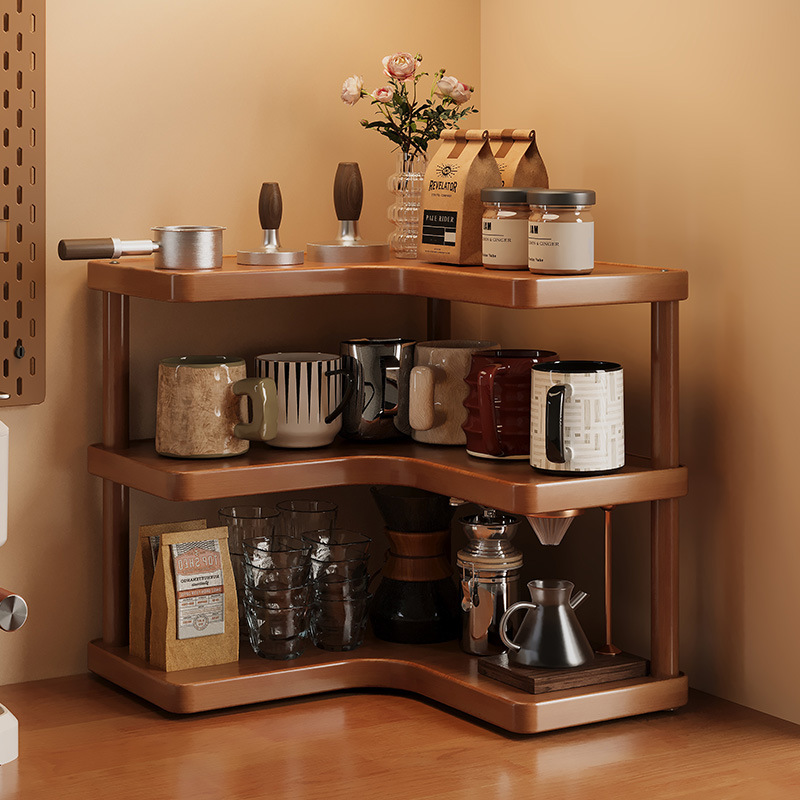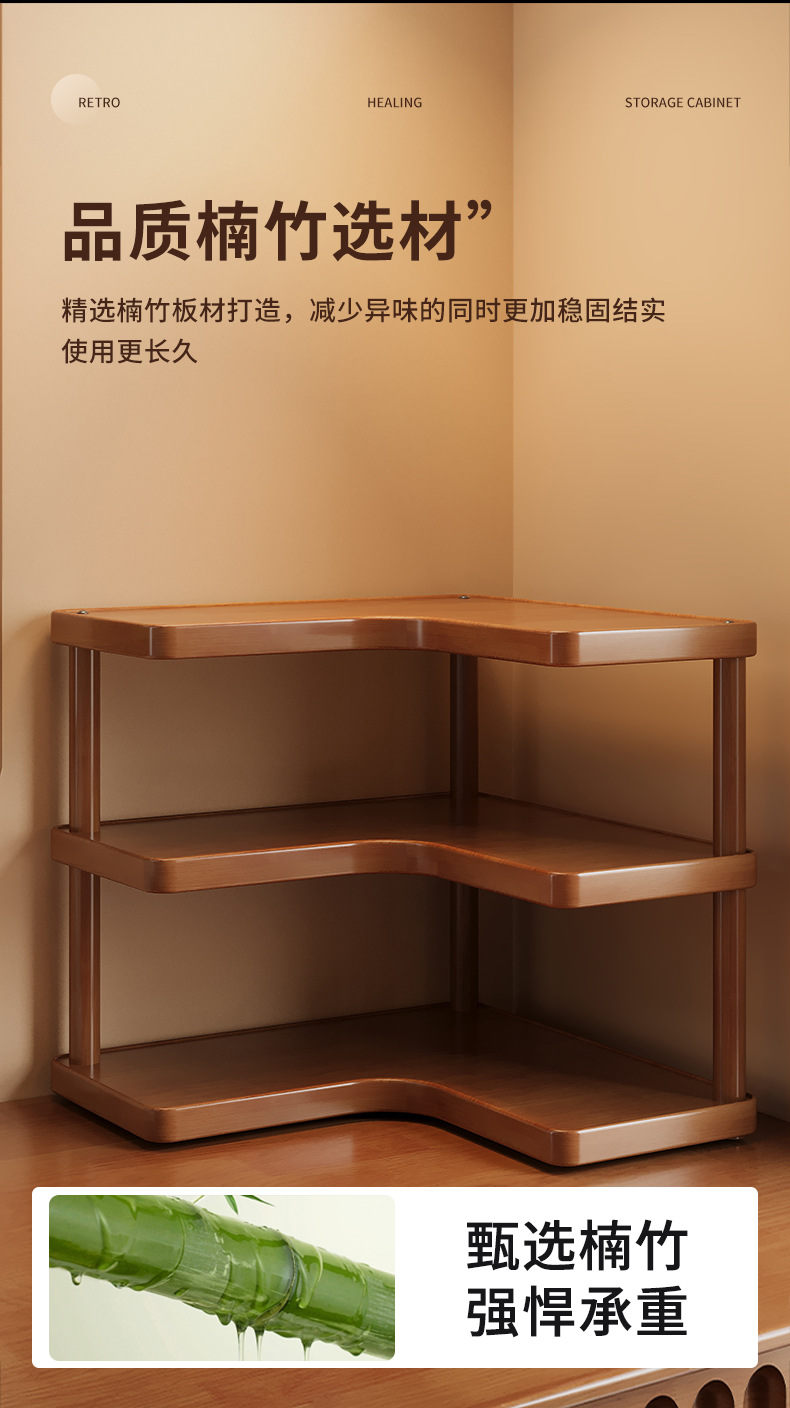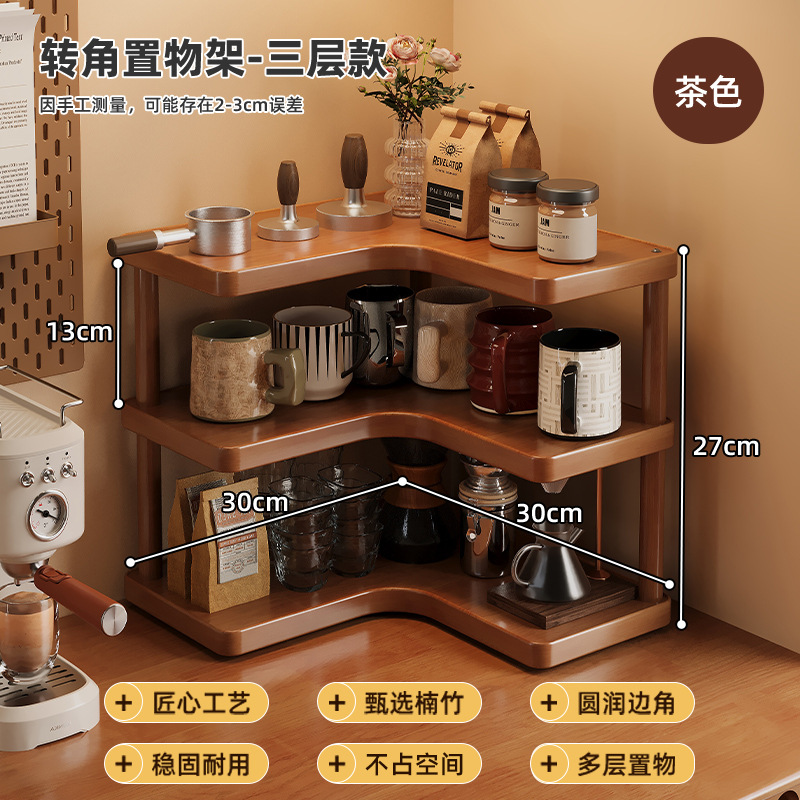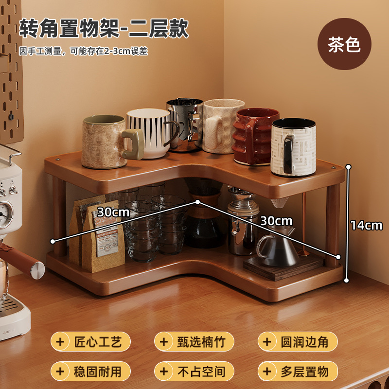 Bathroom Storage Rack, Kitchen Cup and Tableware Organizer, Multi-Layer Bamboo Desktop Corner Storage Rack, No Drilling Required