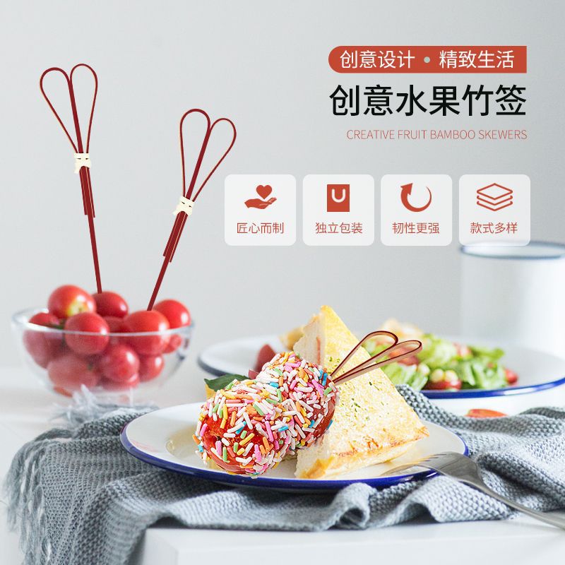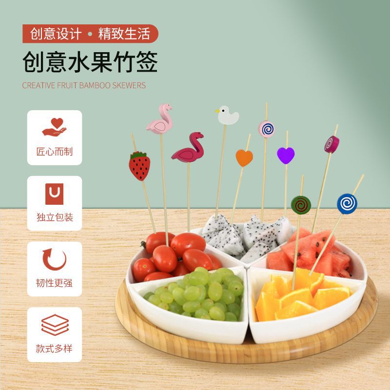 BBQ Bamboo Stakes Disposable Fruit Stakes Flower Stakes Fruit Stakes Creative Art Toothpicks Cocktail Stakes Sandwich Stakes