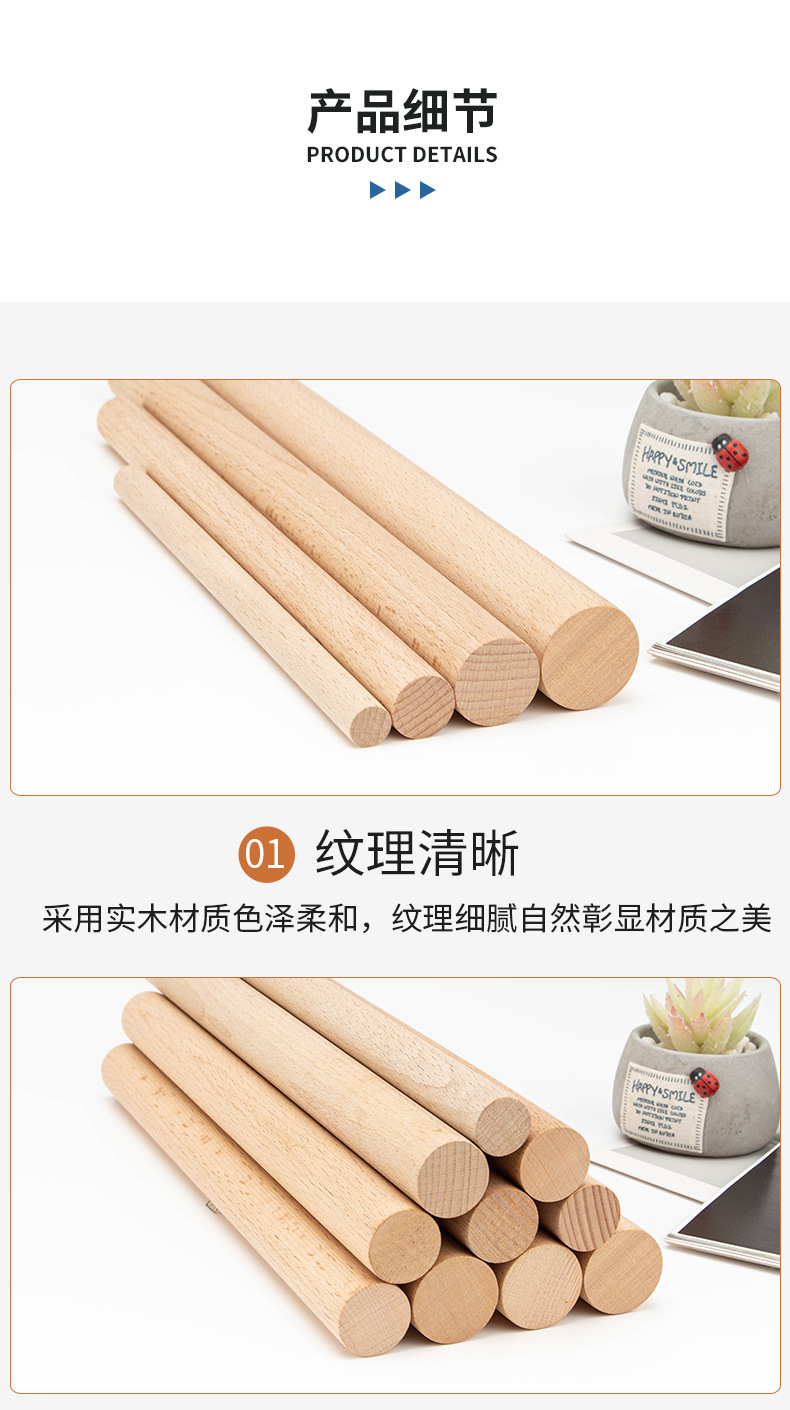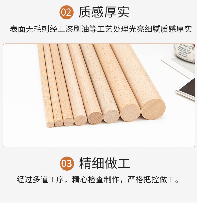 Beech Wood Stick, Round Wood Stick, Wooden Rod, Solid Wood Clothes Hanger Rod, Yoga Fitness Stick, DIY Handmade Small Wooden Stick, Wood Craft