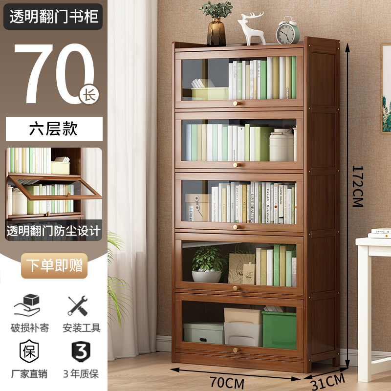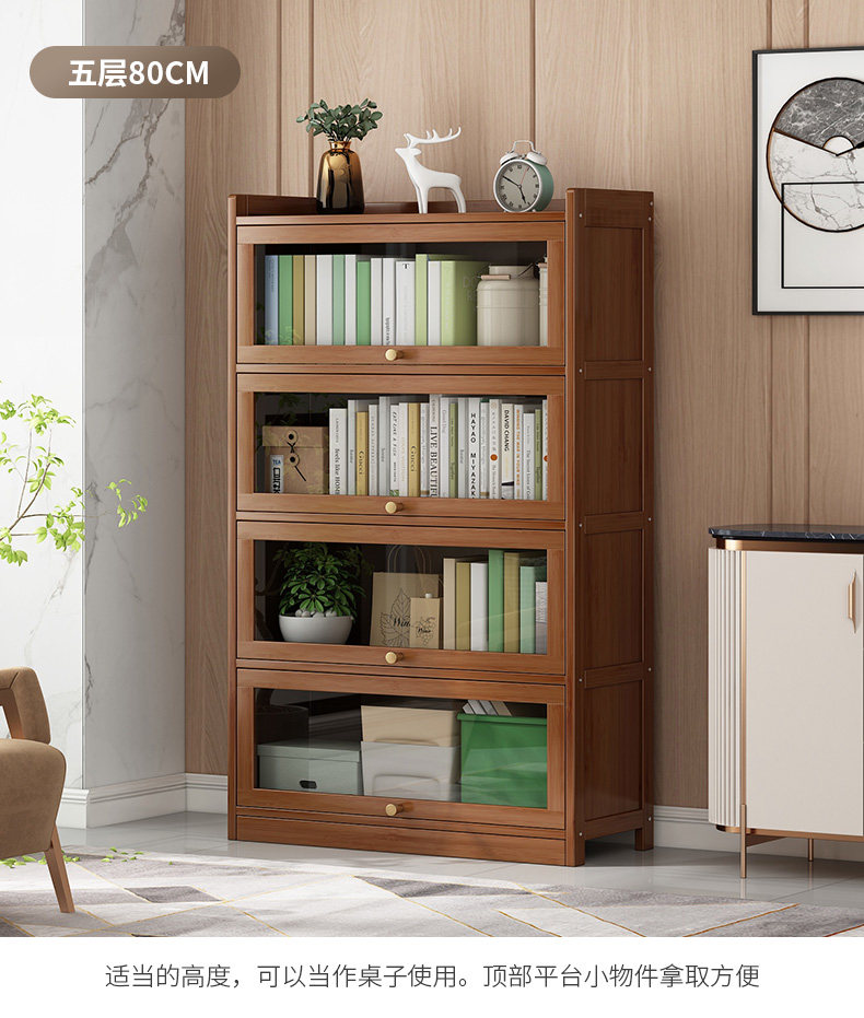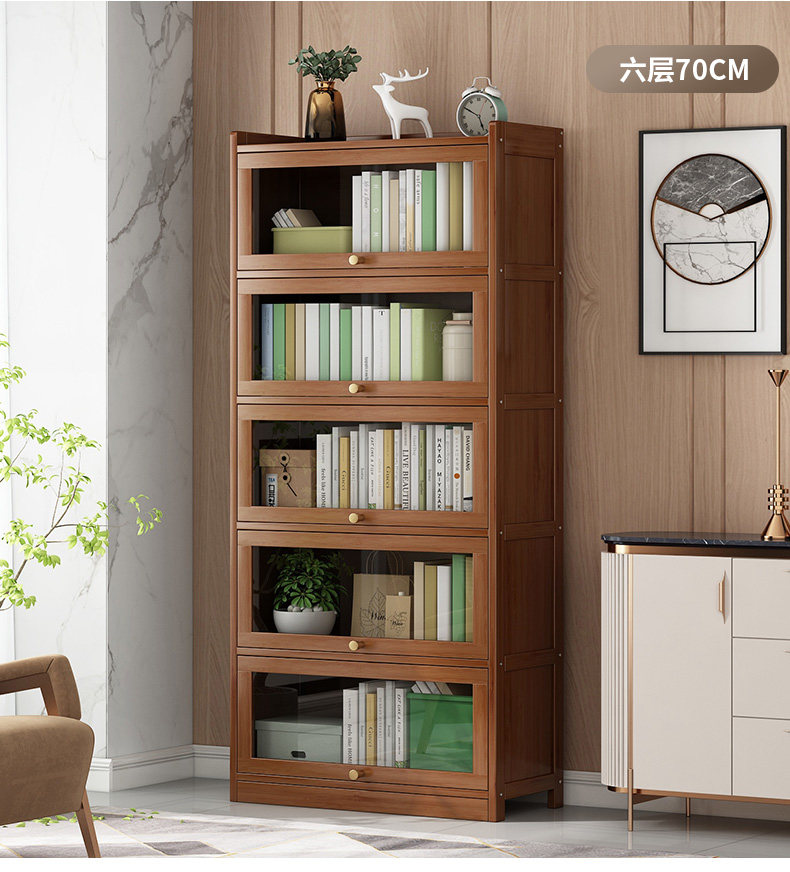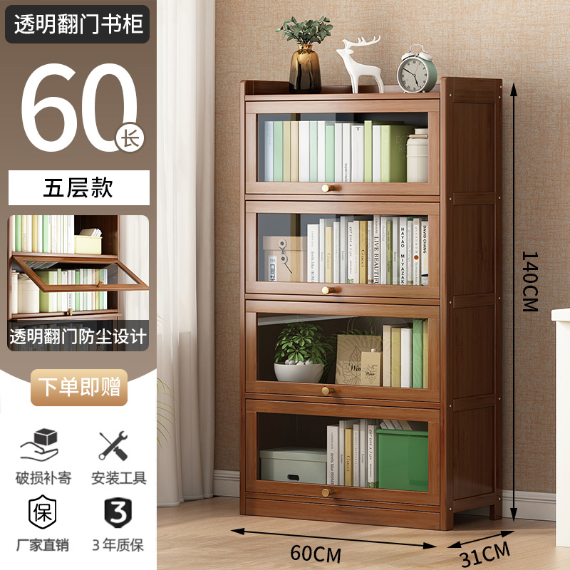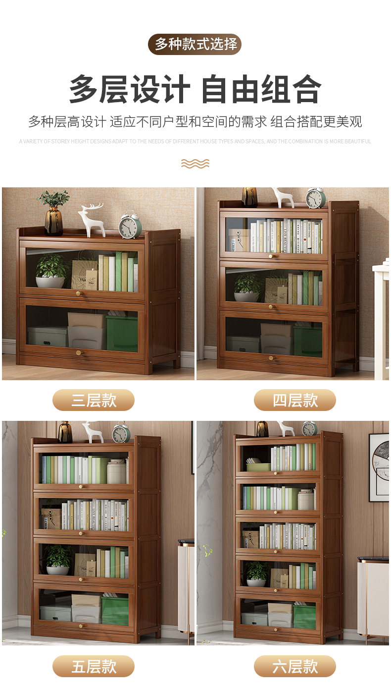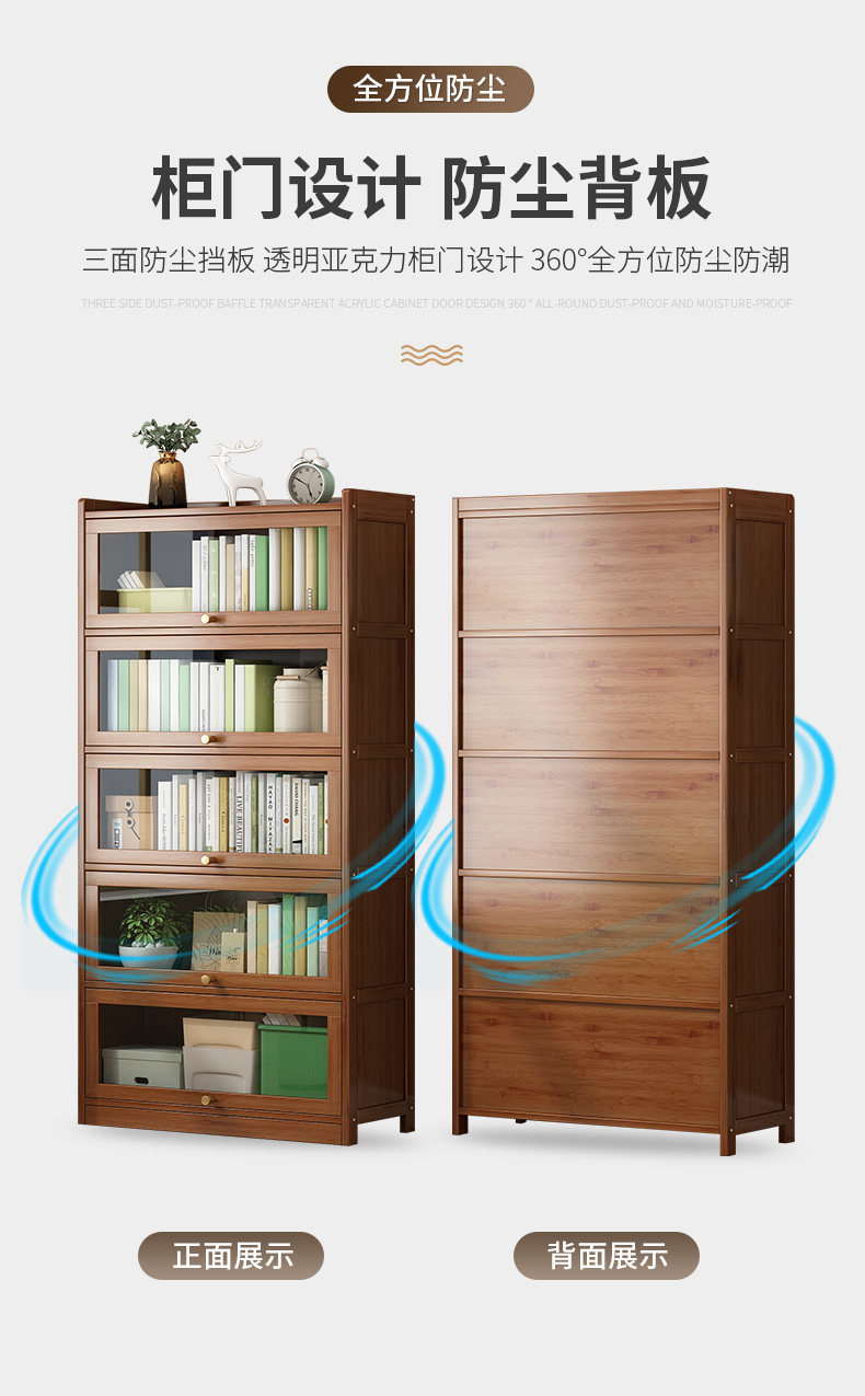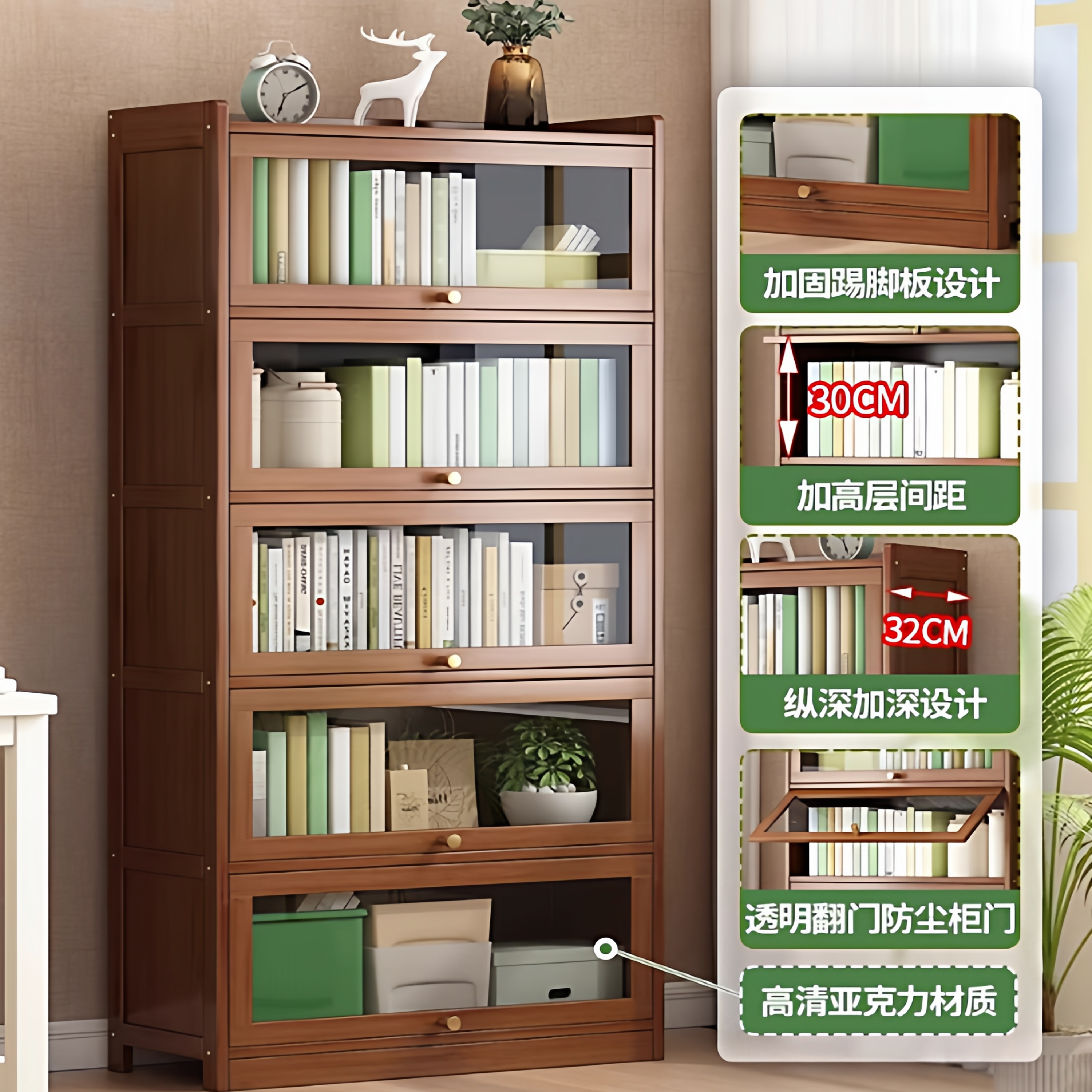 Bookshelf Storage Rack Floor-Standing Bookcase with Door Multi-Layer Dust-Proof Bamboo Storage Shelf Living Room Simple Display Storage Rack