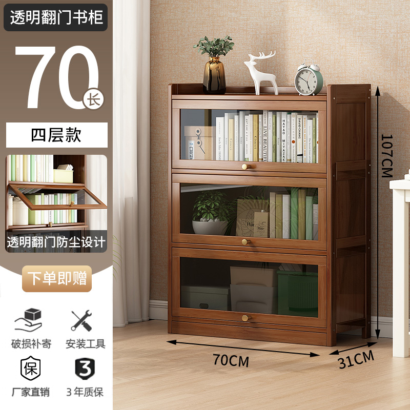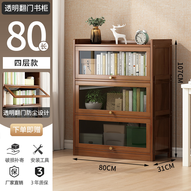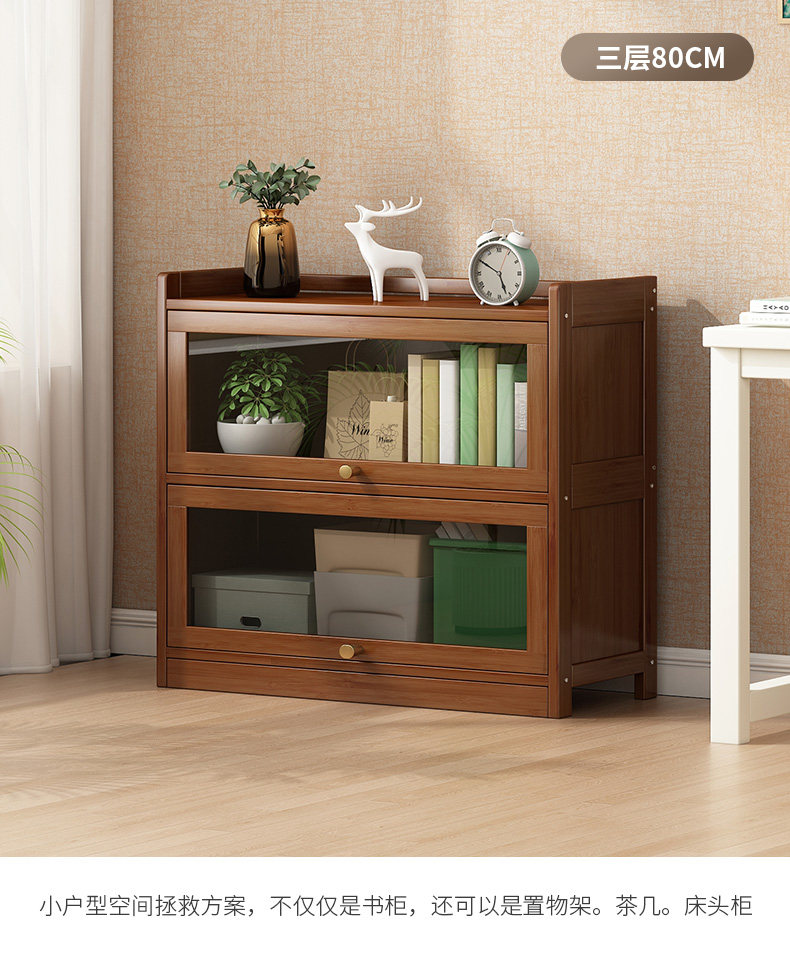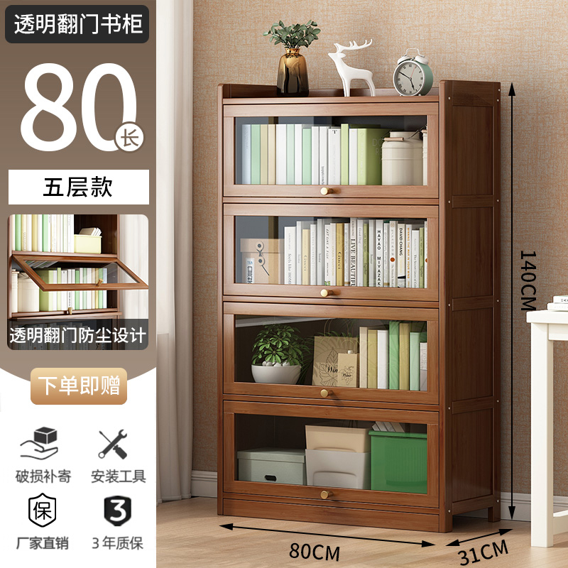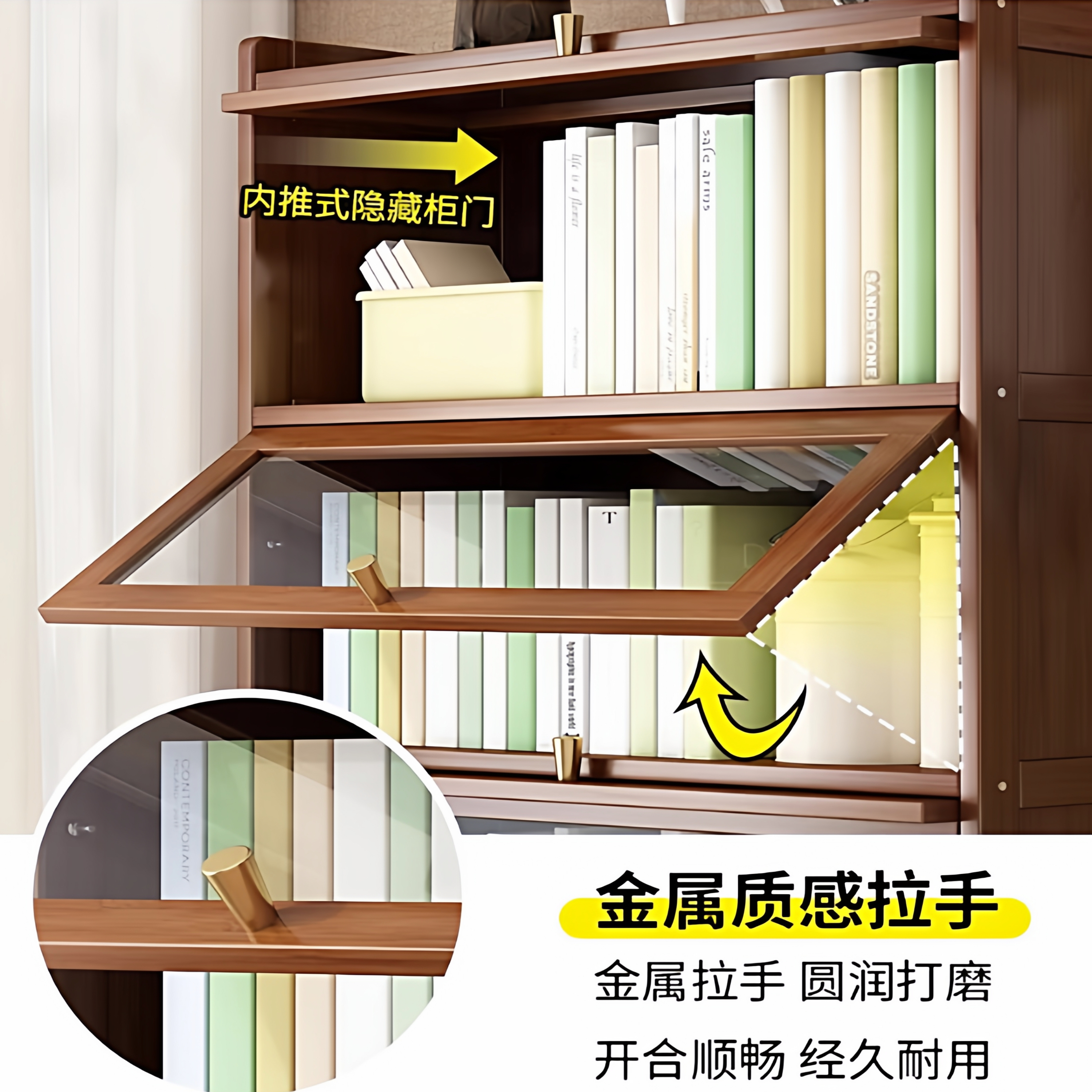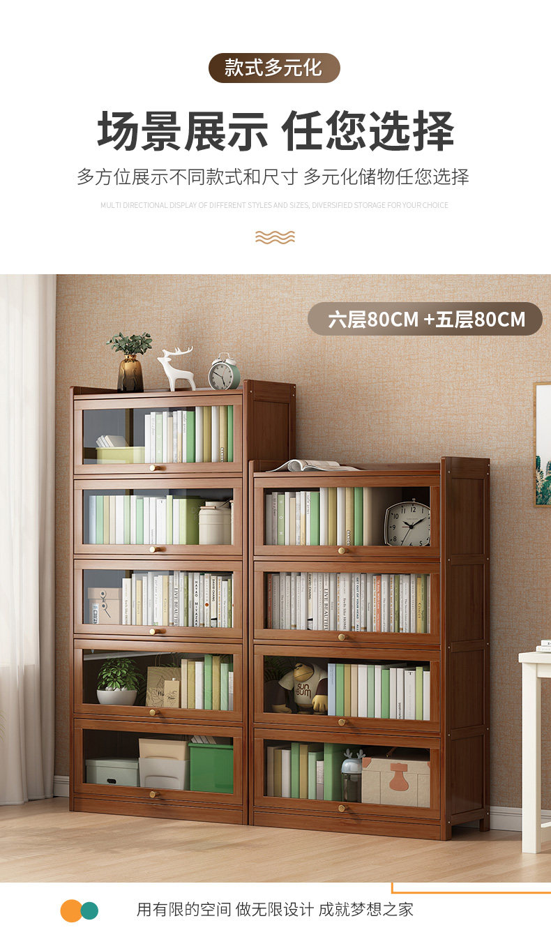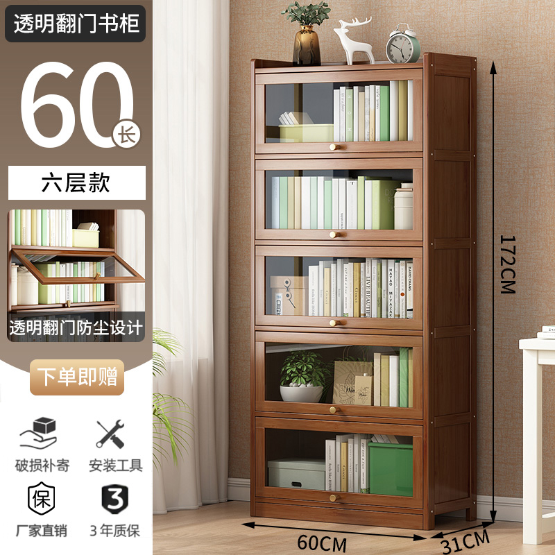 Bookshelf Storage Rack Floor-Standing Bookcase with Door Multi-Layer Dust-Proof Bamboo Storage Shelf Living Room Simple Display Storage Rack