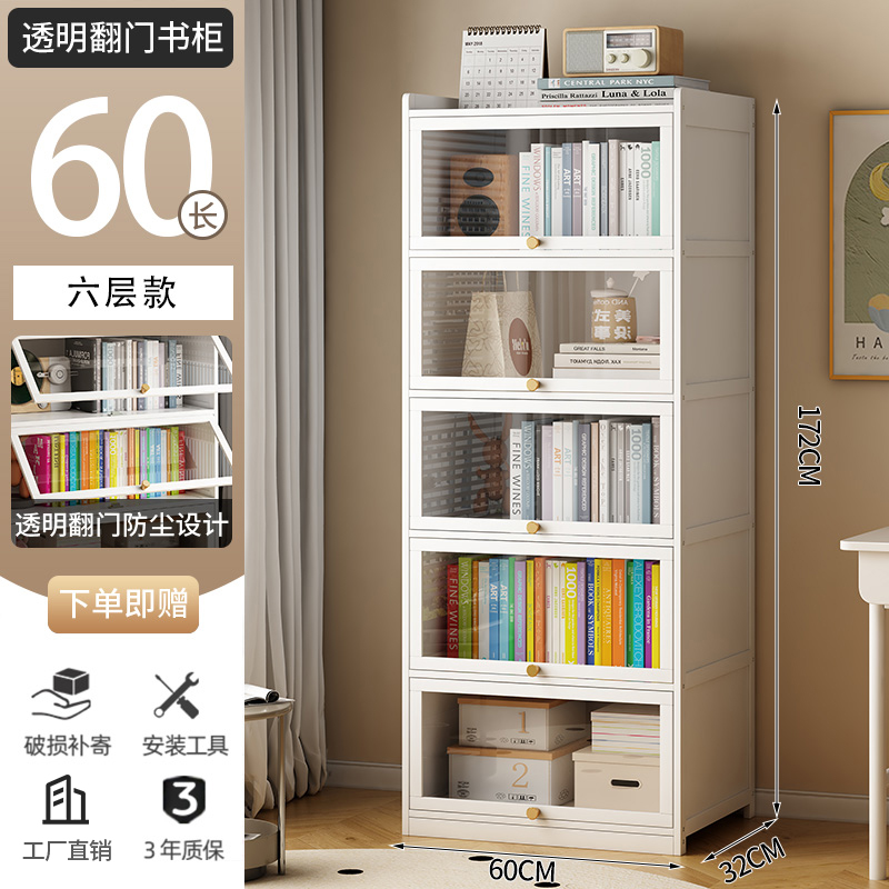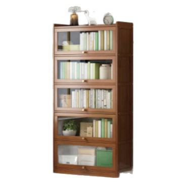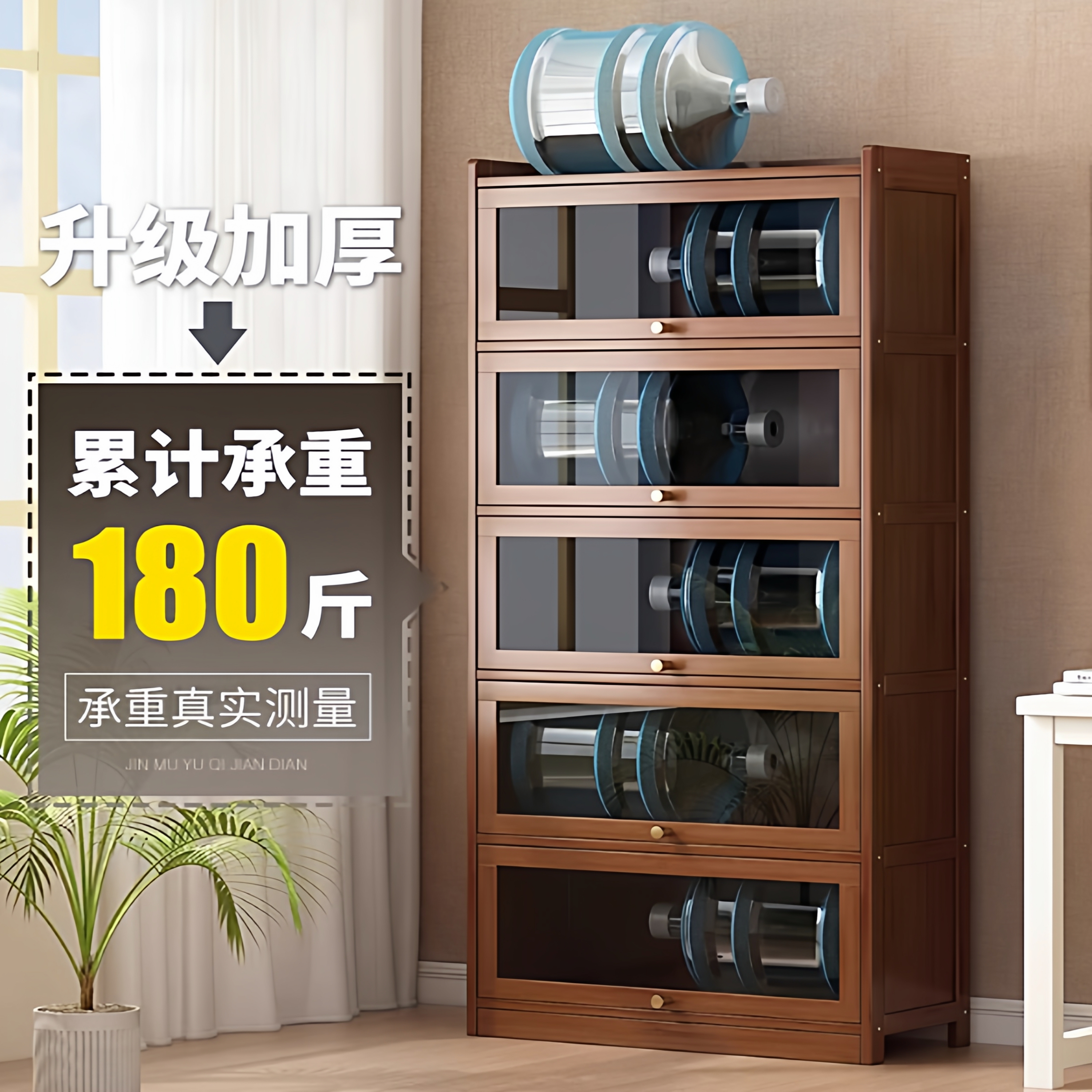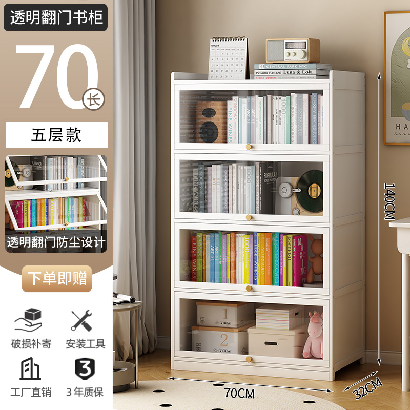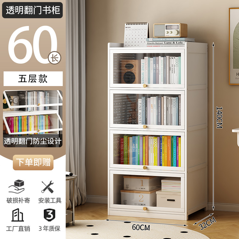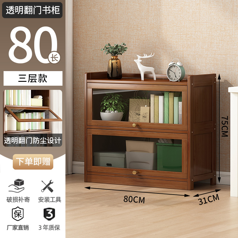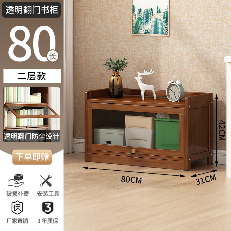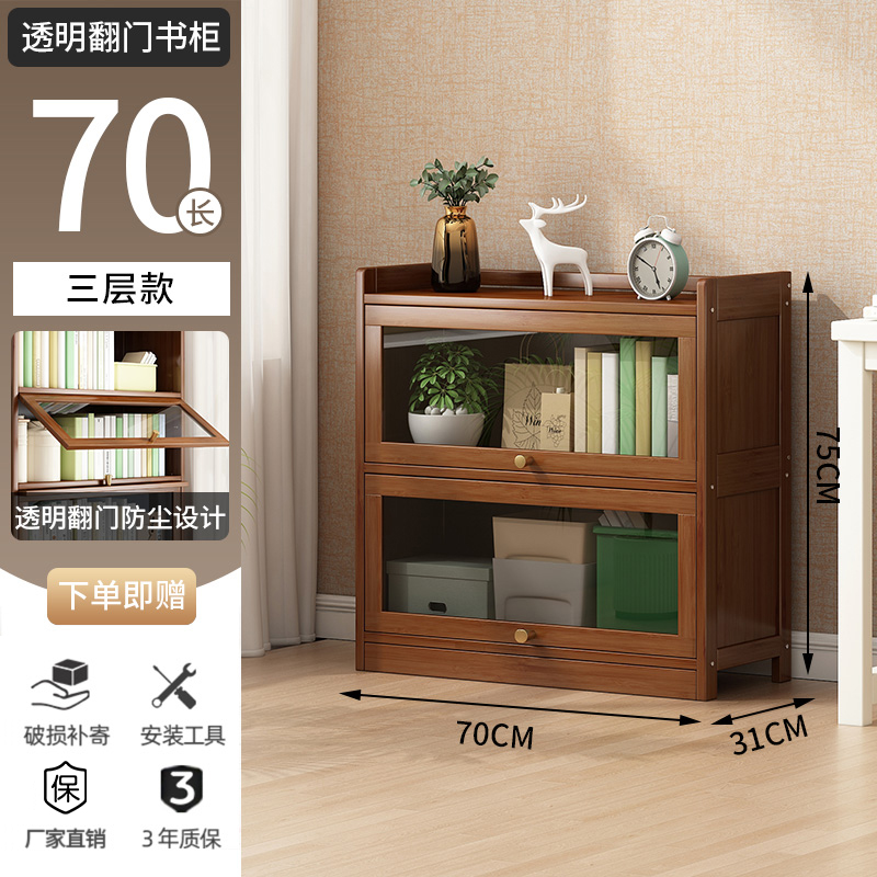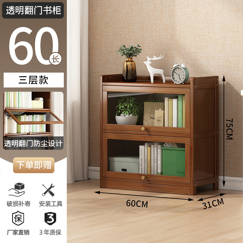 Bookshelf Storage Rack Floor-Standing Bookcase with Door Multi-Layer Dust-Proof Bamboo Storage Shelf Living Room Simple Display Storage Rack