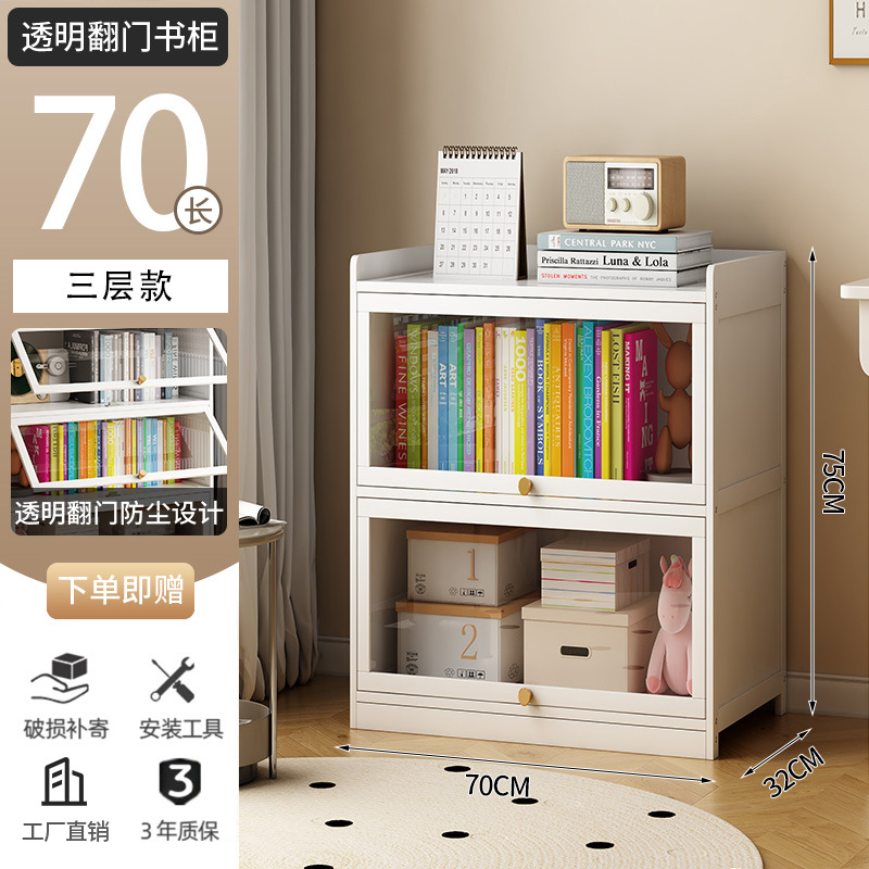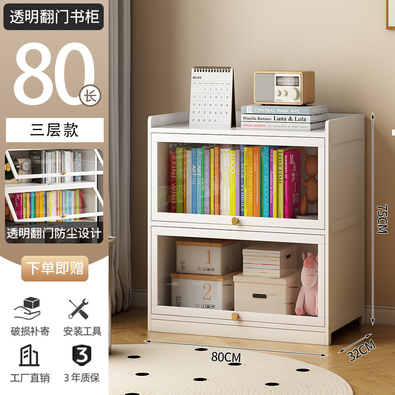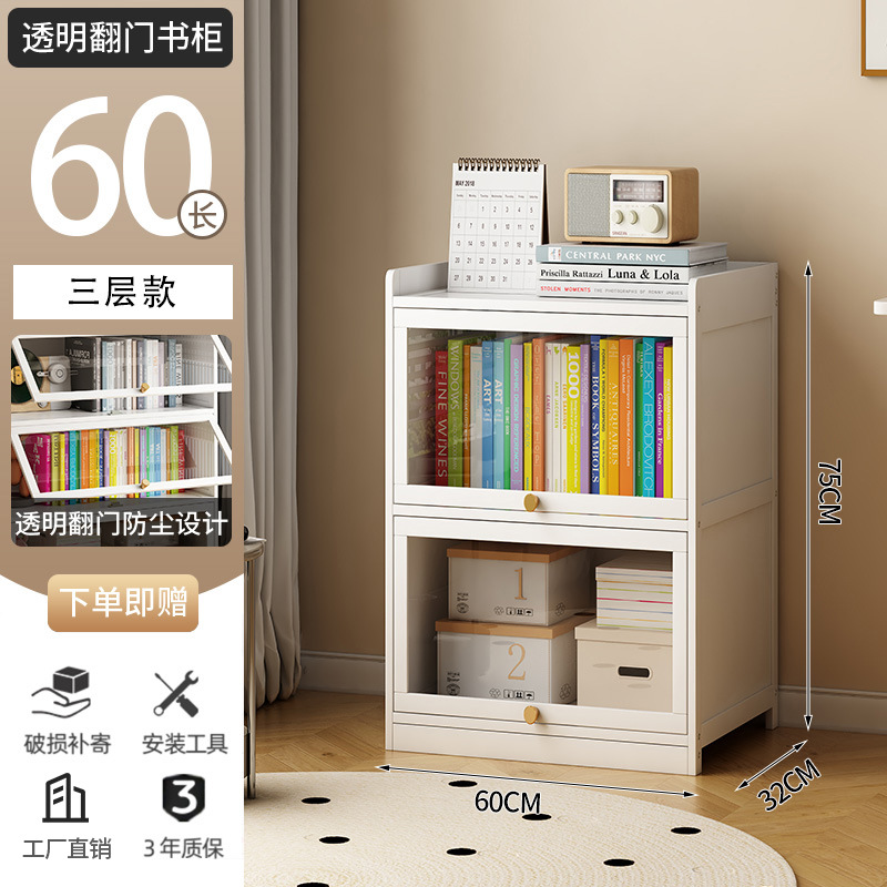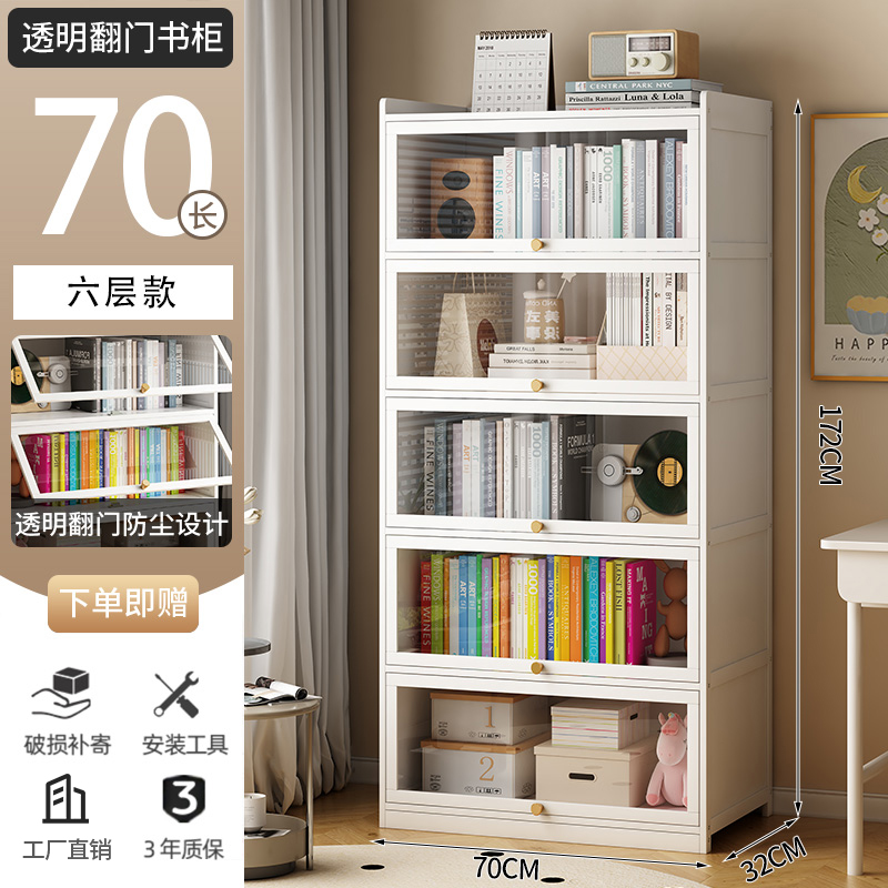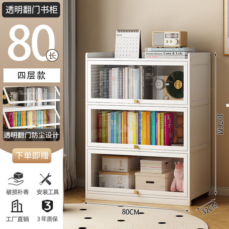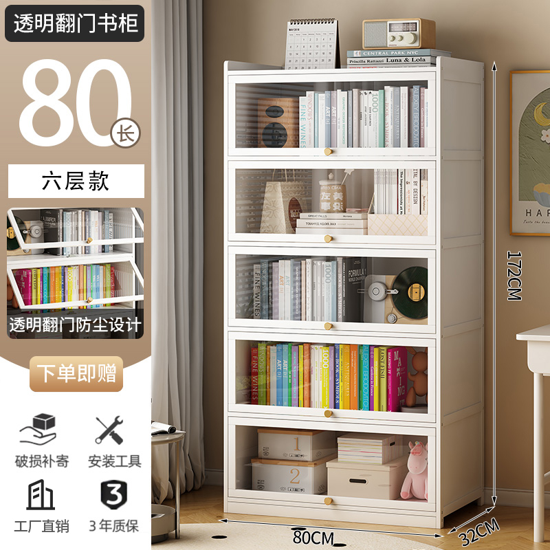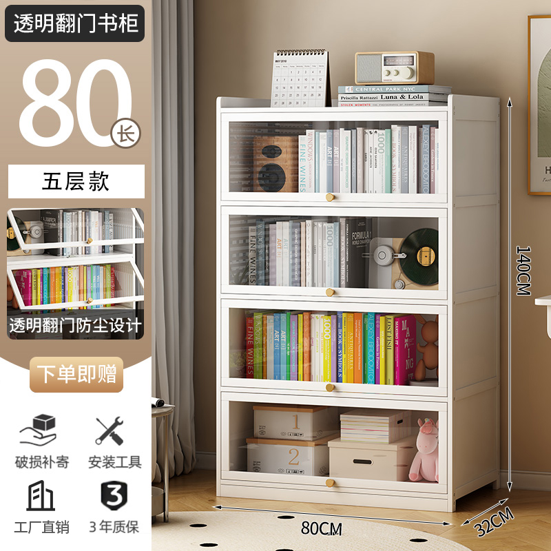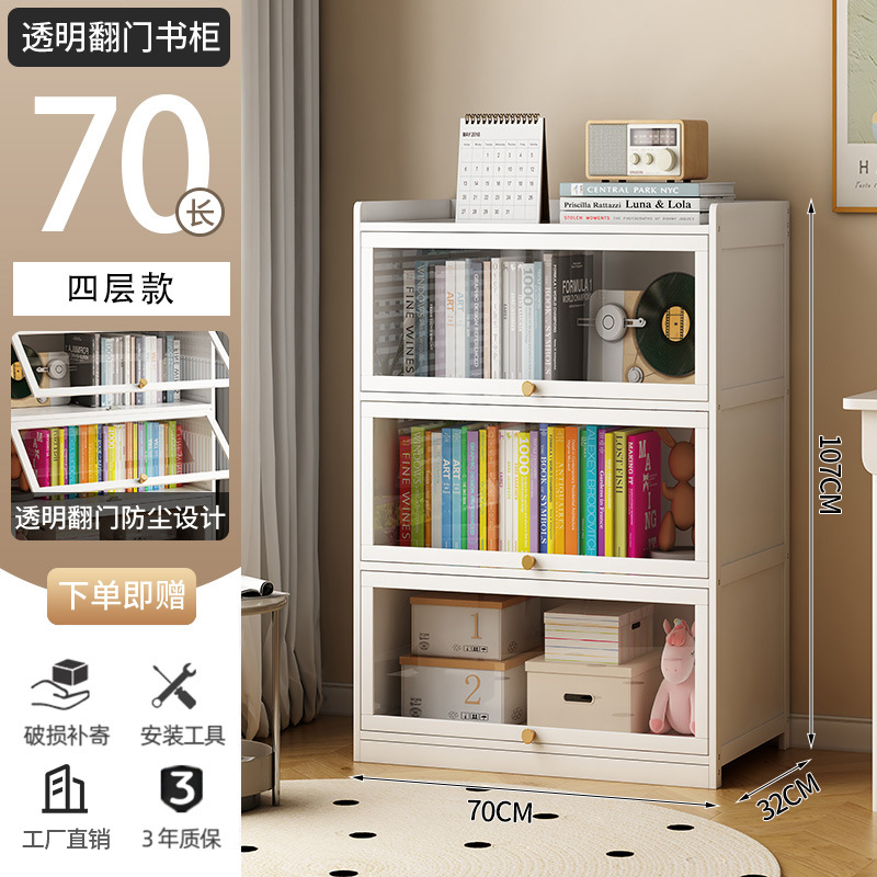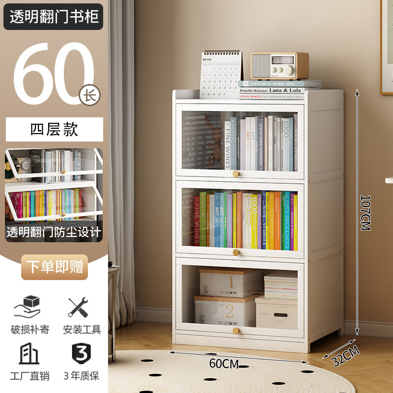 Bookshelf Storage Rack Floor-Standing Bookcase with Door Multi-Layer Dust-Proof Bamboo Storage Shelf Living Room Simple Display Storage Rack