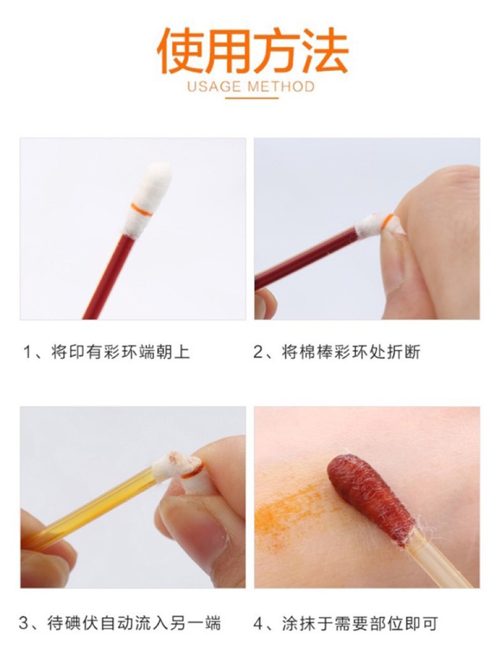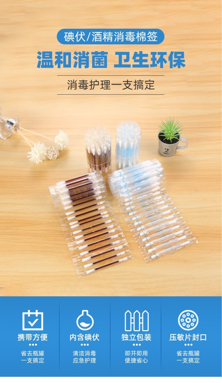 Bulk Disposable Household Travel Outdoor Wound Iodine Cotton Swabs Newborn Navel Disinfection Cotton Swabs Portable