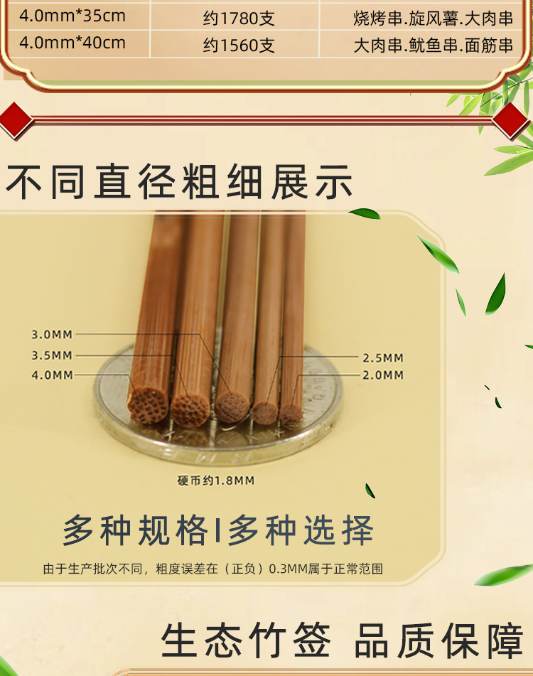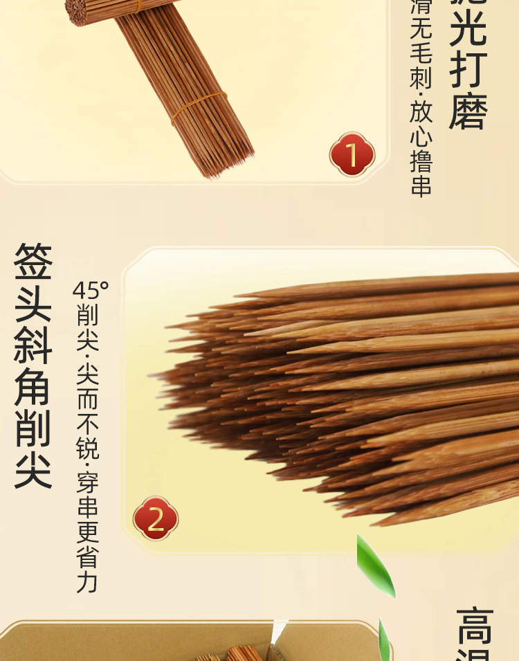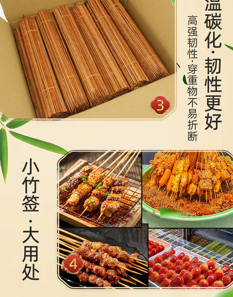 Carbonized bamboo stick disposable stick special hard Guangdong black stick mutton string fragrant roast sausage sugar gourd barbecue stick wholesale